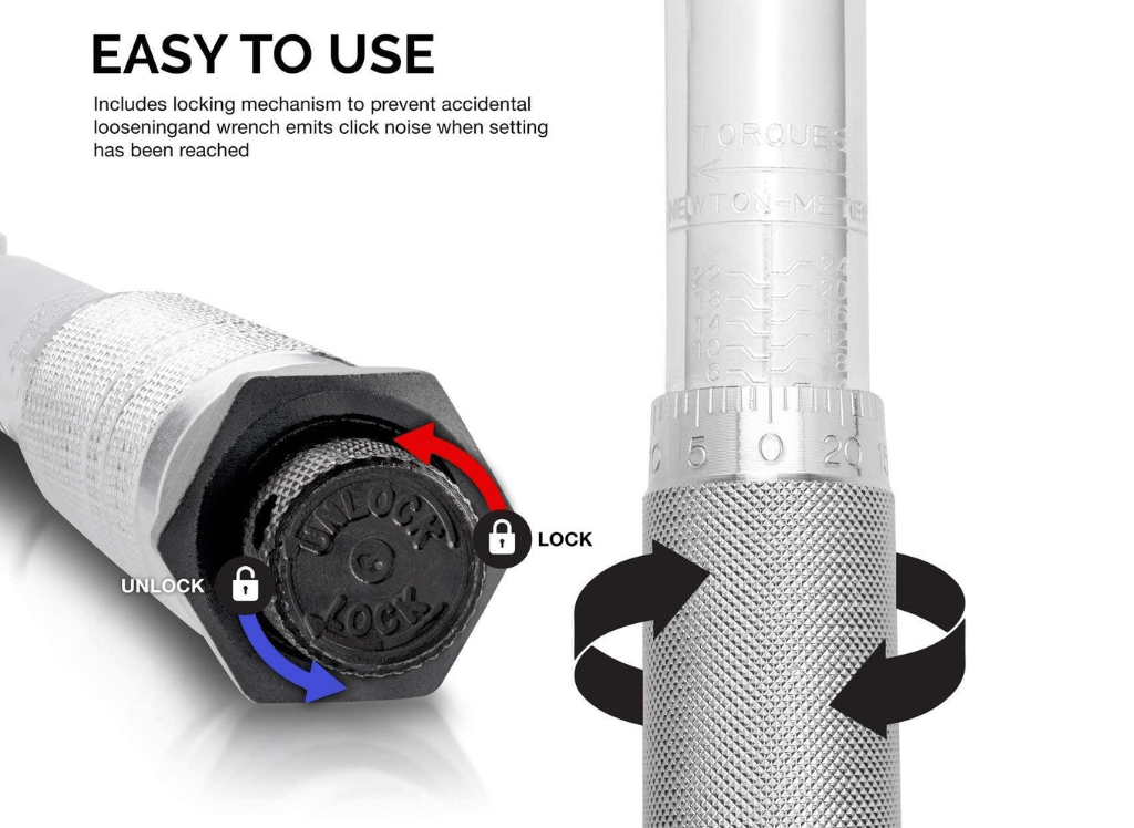 - User-friendly Design: Simple to use with an automatic lock knob and clear 'click' feedback to indicate when the desired torque is achieved.