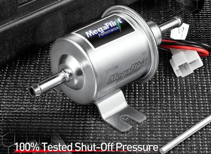 The Megaflint Electric Fuel Pump HEP-02A is an ideal solution for upgrading their vehicle's fuel delivery system. This pump has a maximum output pressure of 4-7 PSI and operates at 12 volts with 1-2 amperes of current.