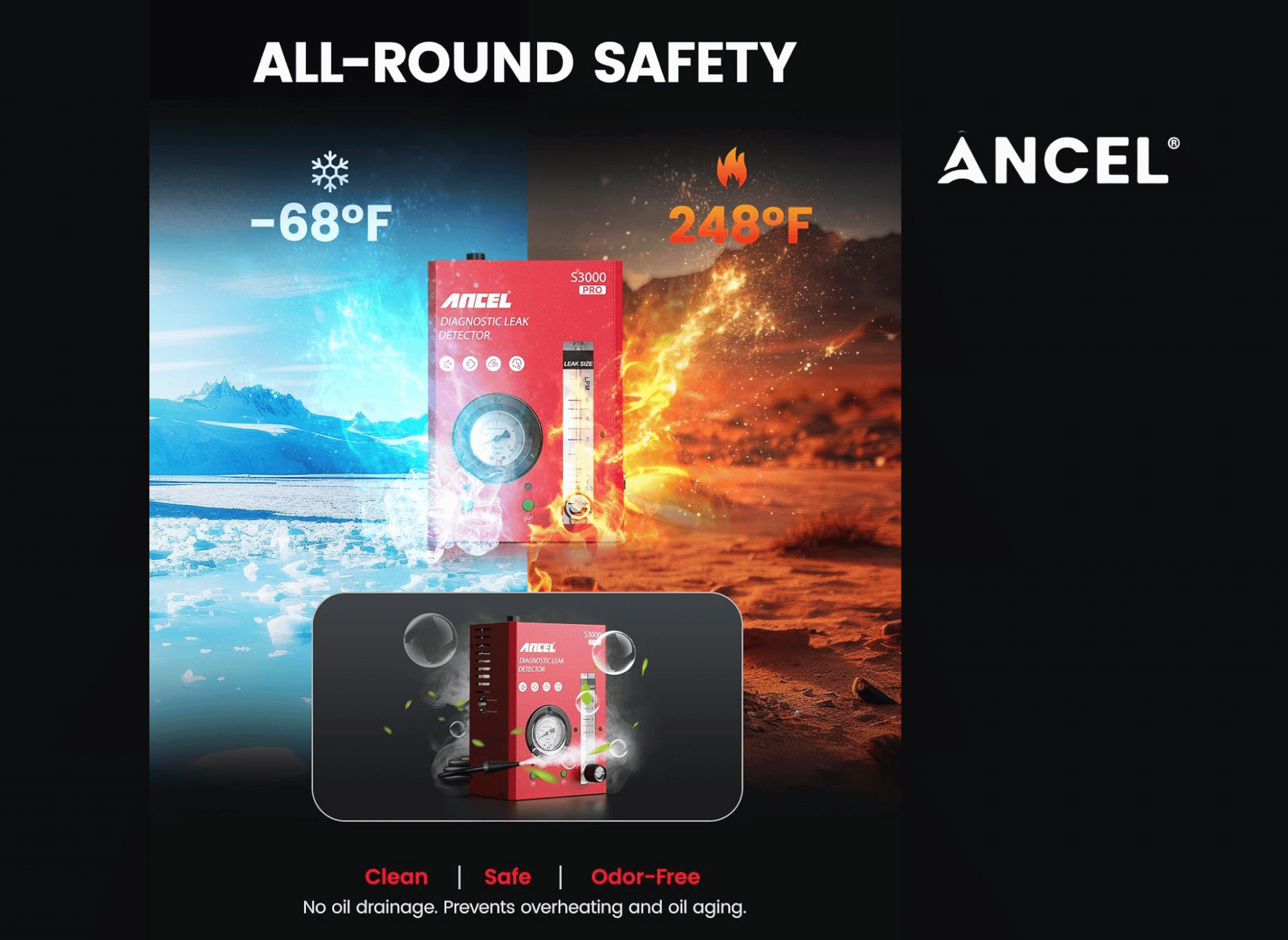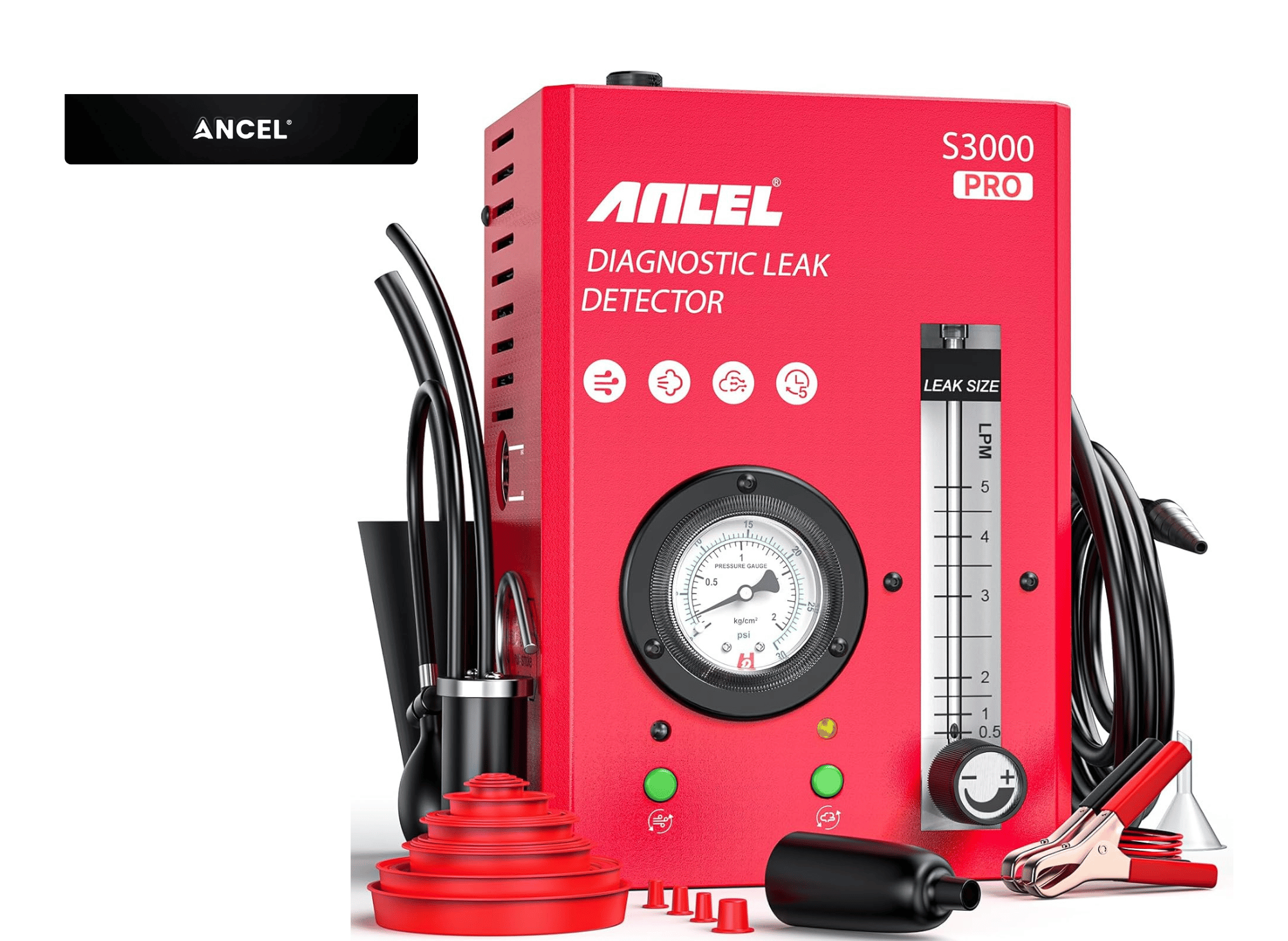 The compact, space-saving design allows the unit to be easily stored or used in limited spaces without hassle, reflecting its exceptional sound quality. Built for durability, the unit is designed to withstand frequent use, ensuring long-term reliability and performance. The ANCEL S3000 PRO helps users efficiently chase and pinpoint leaks in various vehicle systems, saving time and reducing frustration during diagnostics.