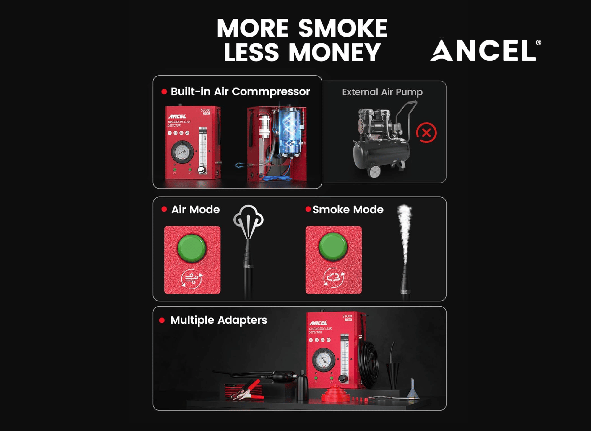 Discover the features and benefits of the ANCEL S3000 PRO smoke machine. Find and fix any vehicle leak with this powerful diagnostic tool.