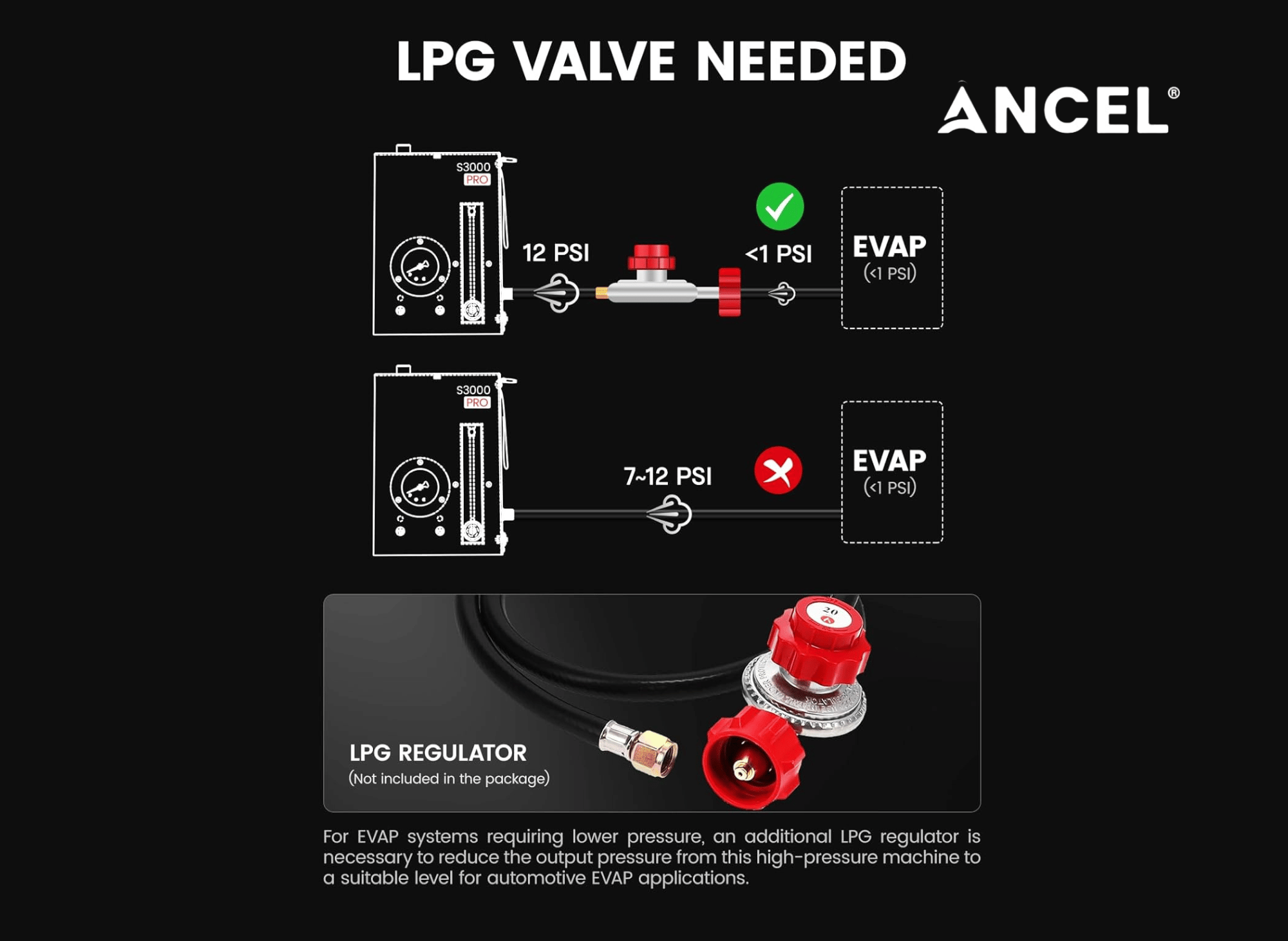 ANCEL S3000 PRO Automotive Smoke Machine with Built-in Air Pump and Pressure Gauge