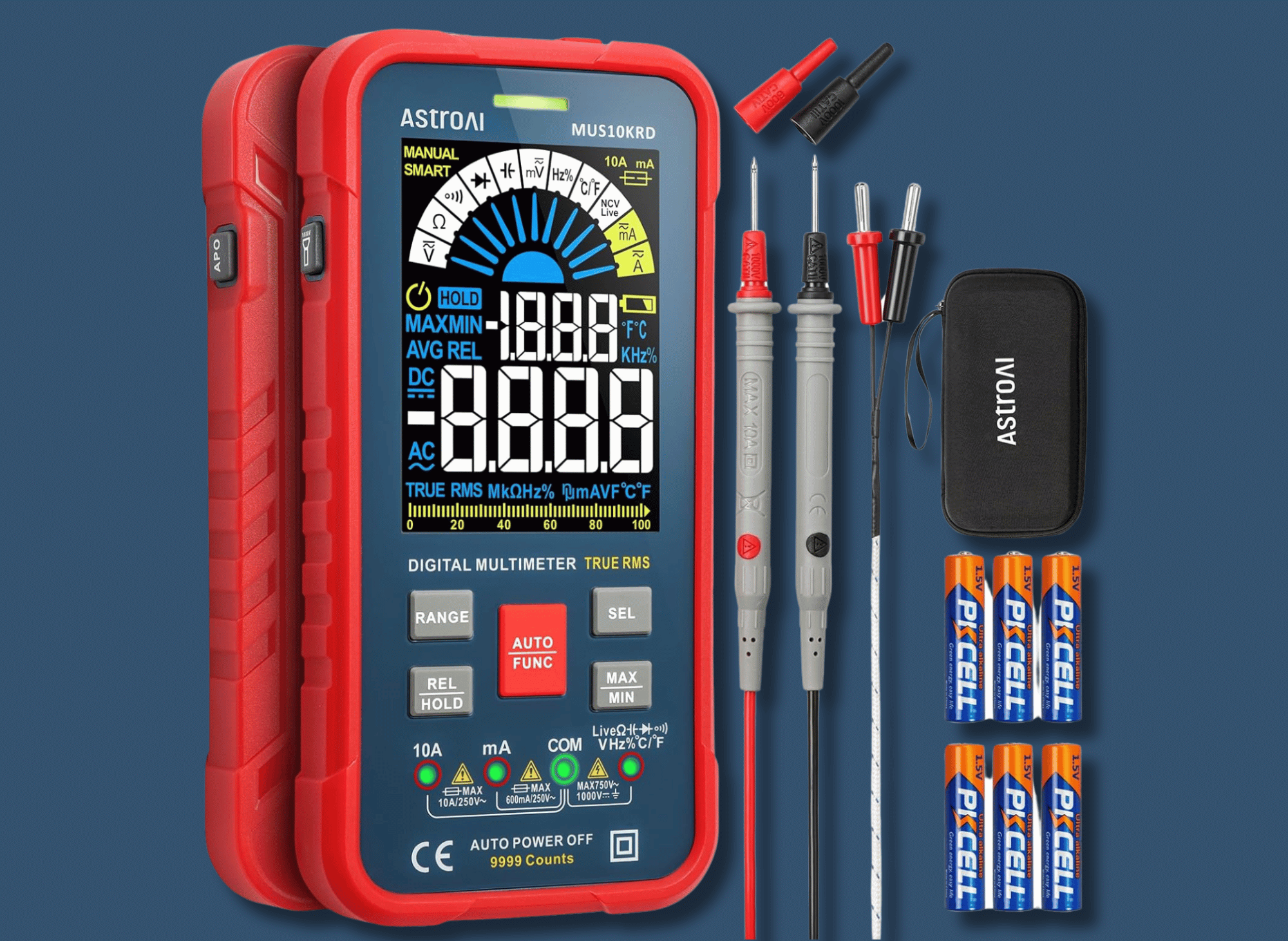 Astroai Multimeter Tester 10000 Counts Trms Auto-Ranging Color LCD Screen Digital Volt Meter