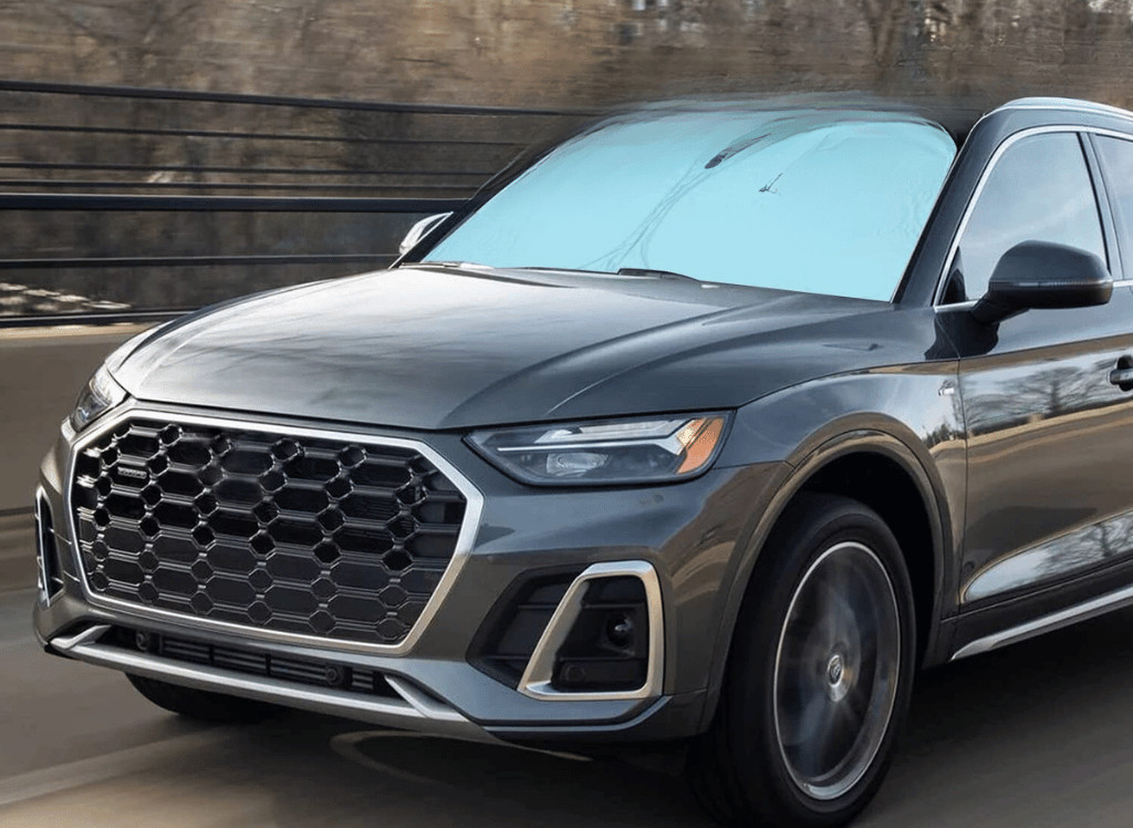 ROCCS Foldable Windshield SunShade is designed to perfectly fit the windshield sun visors of Audi Q5s from 2018-2023. It features an improved No Gap design, preventing overheating and damaging your car's interior elements like the steering wheel, dashboard, and seats.
