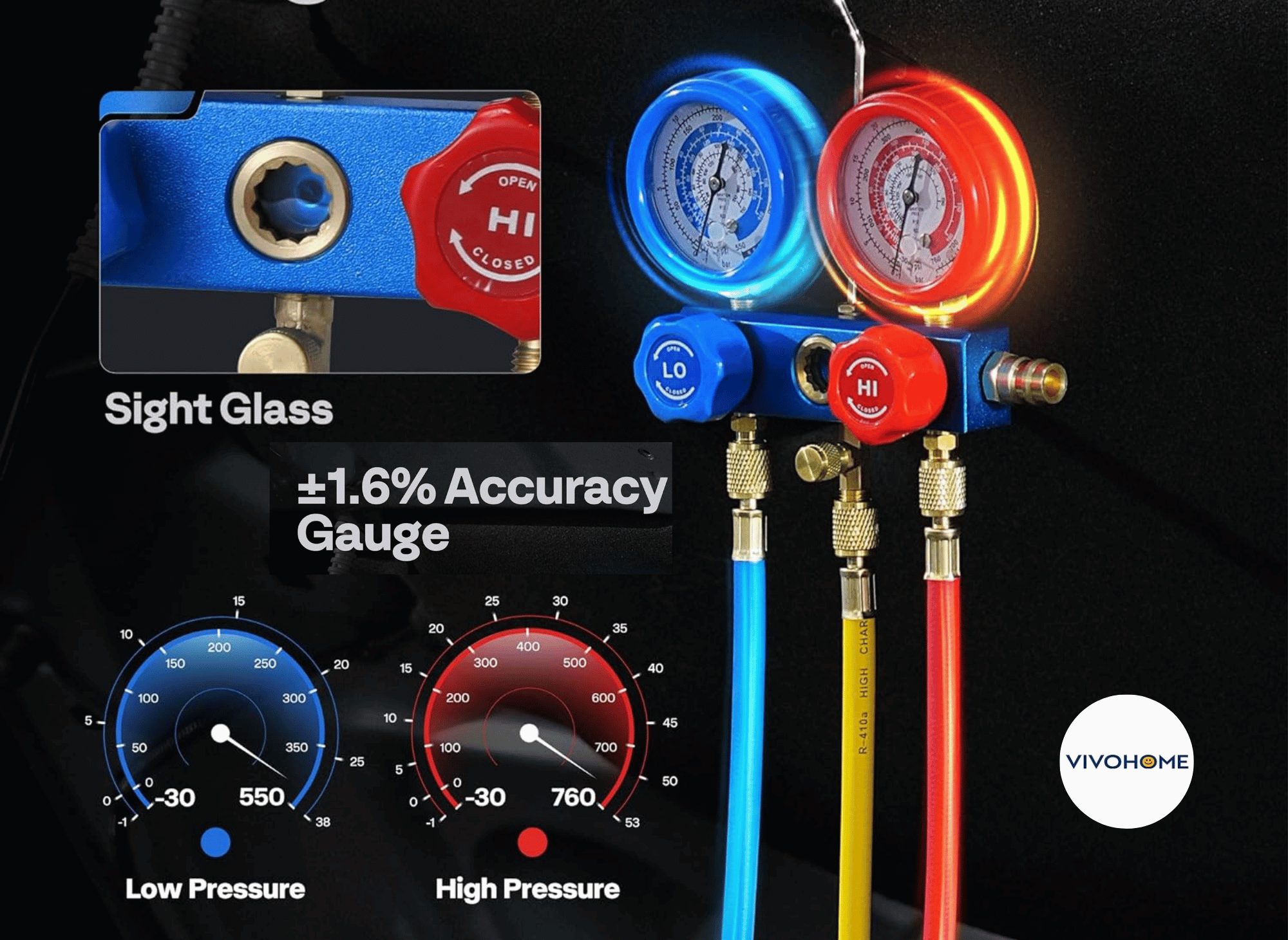 Before diving into the VIVOHOME kit, it’s essential to understand why vacuum pumps and manifold gauges are crucial for HVAC work and to verify their importance. These tools serve two primary functions: removing moisture and air from refrigeration systems, and measuring system pressures during diagnosis and repair.