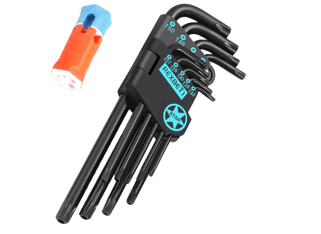 The REXBETI Hex Key Allen Wrench Set is a high-quality tool perfect for various projects. The heat-treated S2 steel is 52-58 HRC for ultimate strength and reliable performance, and it is better hardness and torque than standard chrome vanadium steel (CRV).