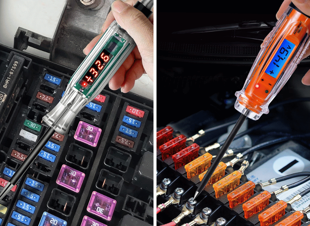 The SC1309 is a professional-grade auto voltage detection unit compatible with 6-volt and 12-volt batteries. It features heavy-duty metal clamps that securely connect to top- and side-mount battery posts and an integrated battery and alternator tester that lets users determine their battery’s charge level and diagnose vehicle electrical problems.