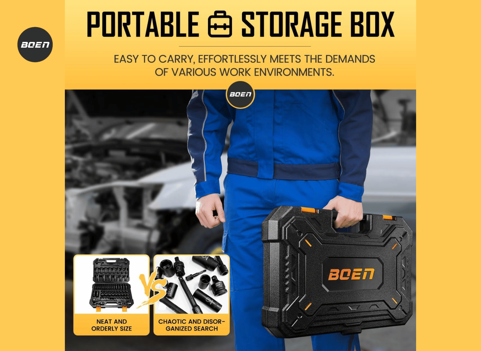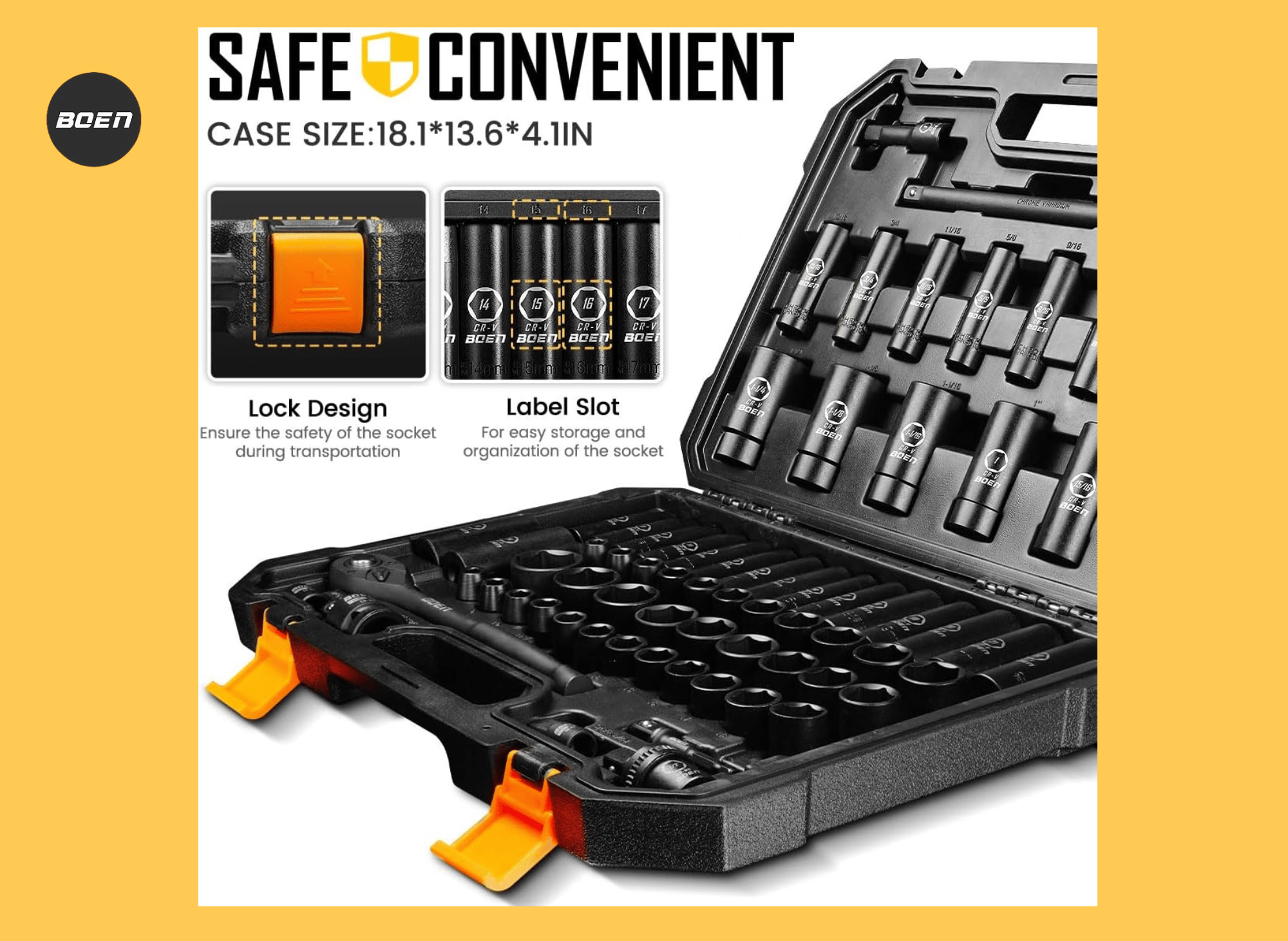 The BOEN 1/2” Drive Impact Socket Set is more than just a box of metal cylinders; it is an investment in efficiency and reliability. Designed for both professionals and DIY enthusiasts, this set offers the durability required for heavy impact use, the precision needed for delicate tasks, and the organization required to avoid the chaos of mismatched tools during a complex repair. With its robust construction, you can confidently tackle even the toughest jobs without worrying about wear and tear.