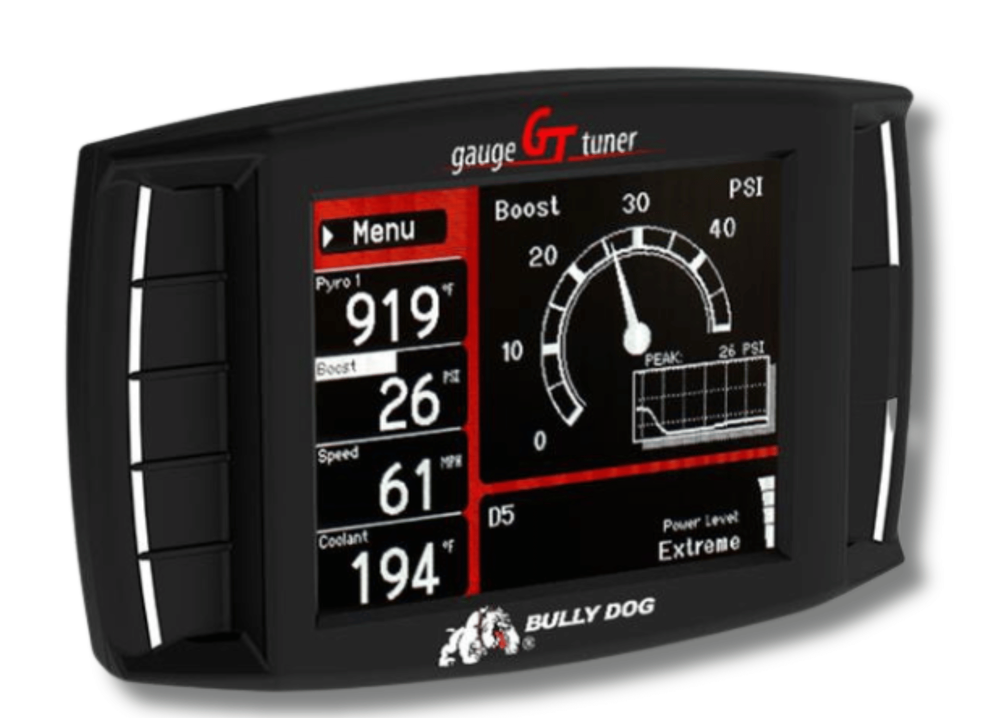 Beyond tuning, the Bully Dog GT functions as a premier monitor. The device features a full-color screen that displays a wide range of vehicle parameters and the vehicle's PCM data that your factory dashboard simply doesn’t show. The tuner also features a digital gauge display for critical data like boost pressure, EGTs, and transmission temperature.