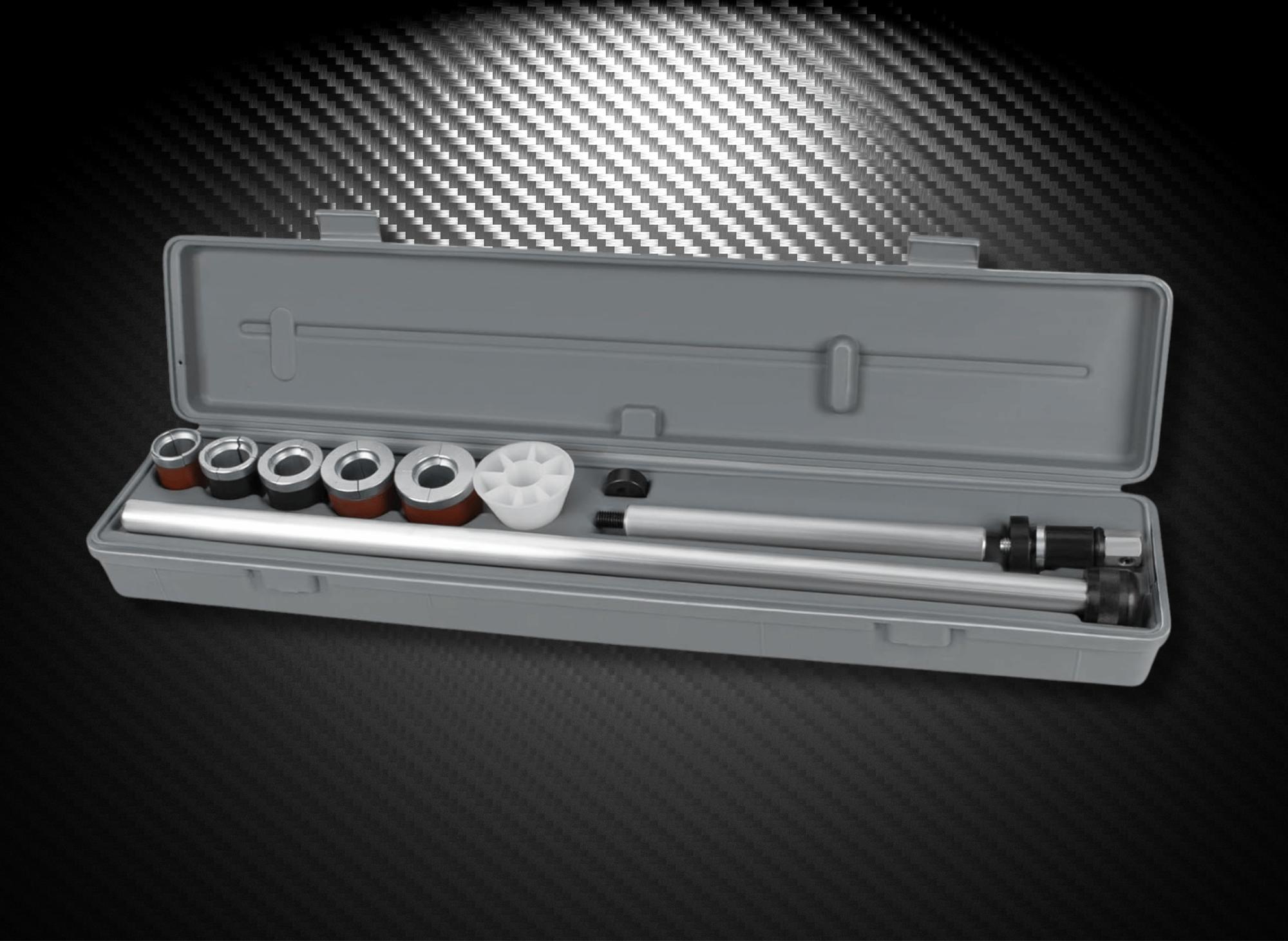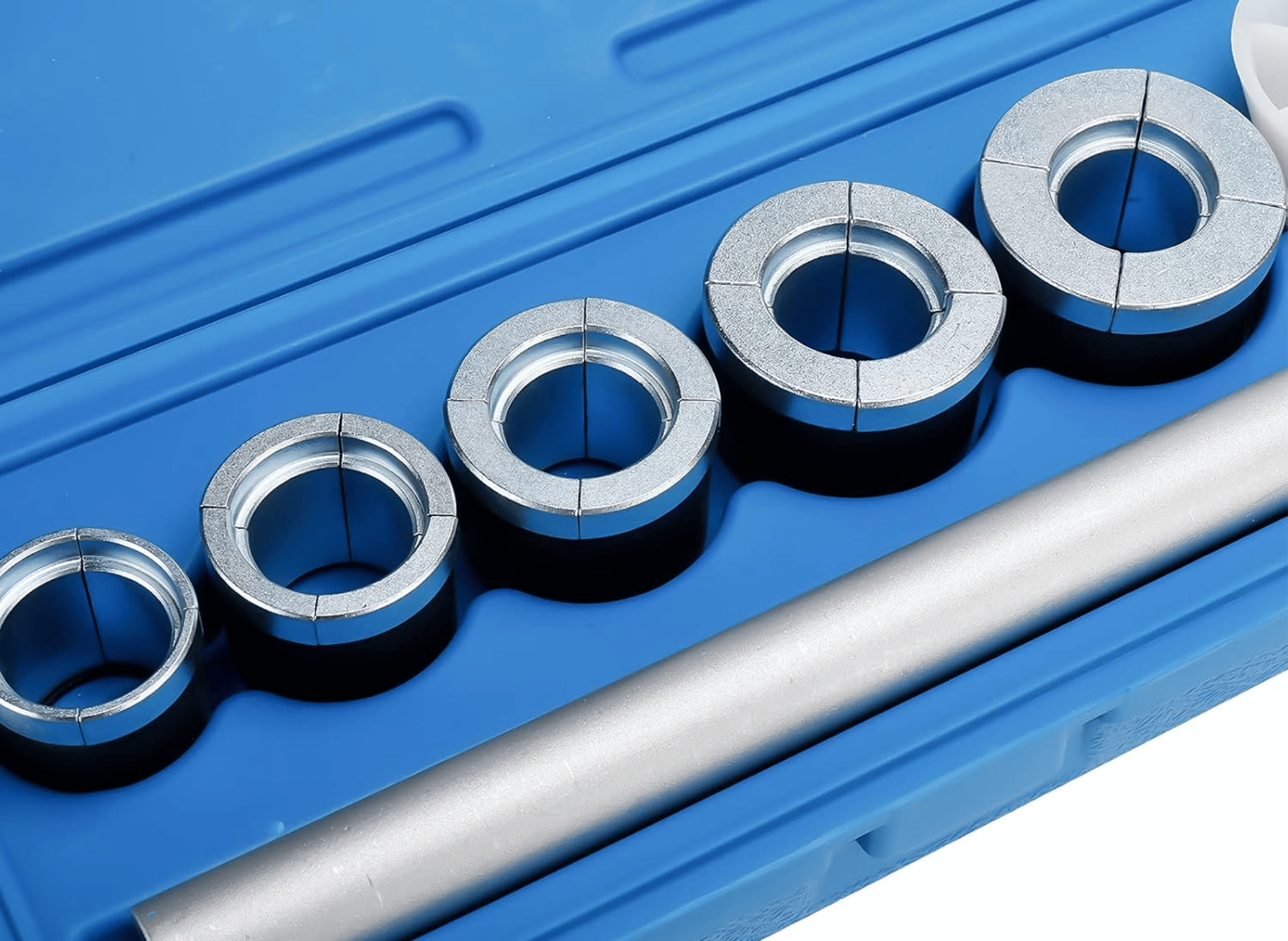 - Comprehensive Set: Includes driving shaft, driving shaft extension, expander unit, five split driving plugs, two driving collars, and a centering cone.