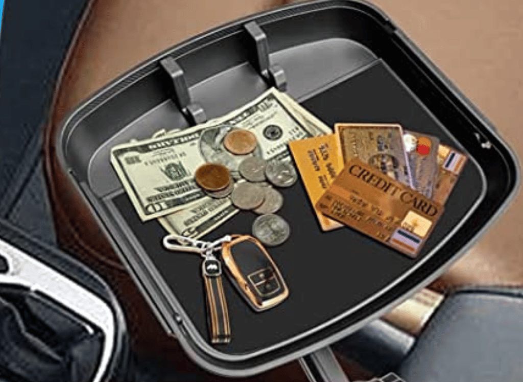 The Cup Holder Tray is the perfect way to keep your car organized and clutter-free. It stores coins, phones, keys, and other small items, preventing them from shifting around or dropping between seats during your drive.