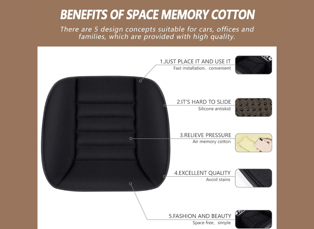 - Pressure Relief: The 100% memory foam construction offers immediate pressure relief, making long drives or seated work more comfortable.