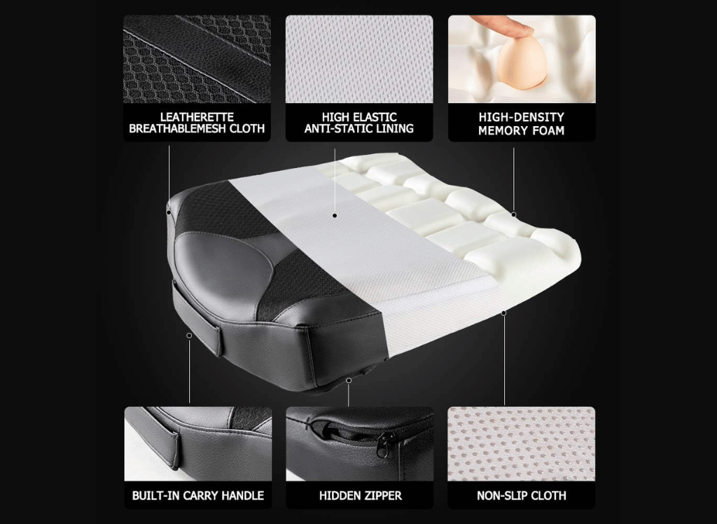 With its superior design and materials, the Qyilay Front Seat Cushion is the ultimate choice for those seeking the best car seat cushion that offers support and tailbone pain relief. Its adjustable height feature allows for a customized fit, providing optimal comfort for extended periods of sitting.