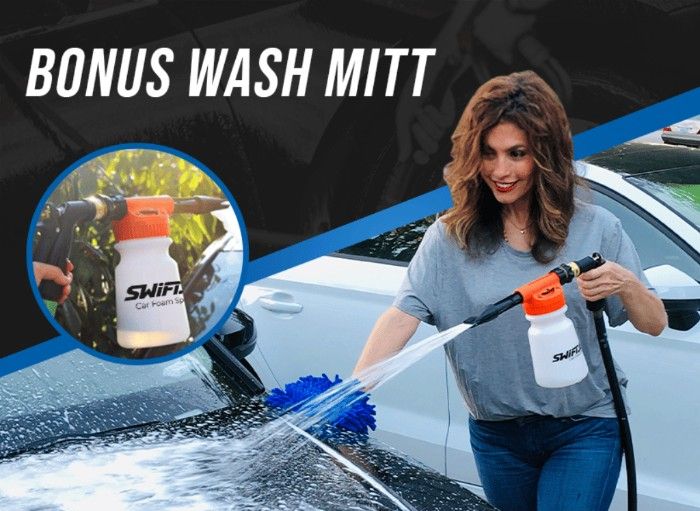 SwiftJet Car Wash Foam Gun is the perfect tool for cleaning your car without going to a professional car wash. This all-in-one foam gun mixes water from the garden hose with a soap solution.