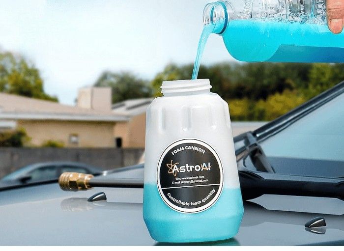 The AstroAI Foam Cannon is a powerful cleaning tool with superior performance with its heavy-duty foam core and adjustable nozzle. The extra-wide neck makes pouring soap liquid into the bottle easy without spillage or waste.