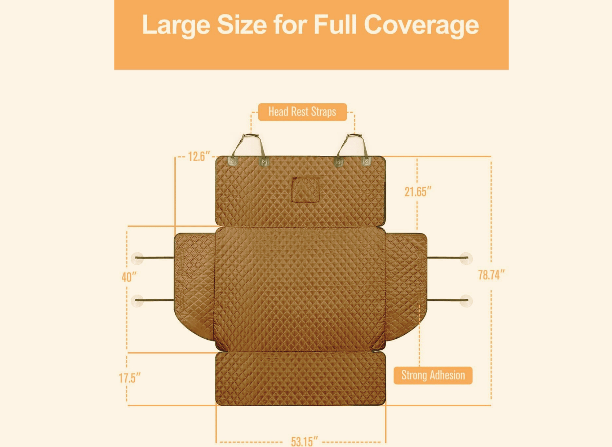They understand that safety is paramount while traveling with pets, so they have included an extra-large textured anti-slip rubber backing measuring 53.15” x 40”. This provides stability during quick turns and speed bumps, along with two suction cups and three strong Velcro straps on both sides to securely fix the side panels. Please note that the suction cups will have a firmer grip when slightly damp.