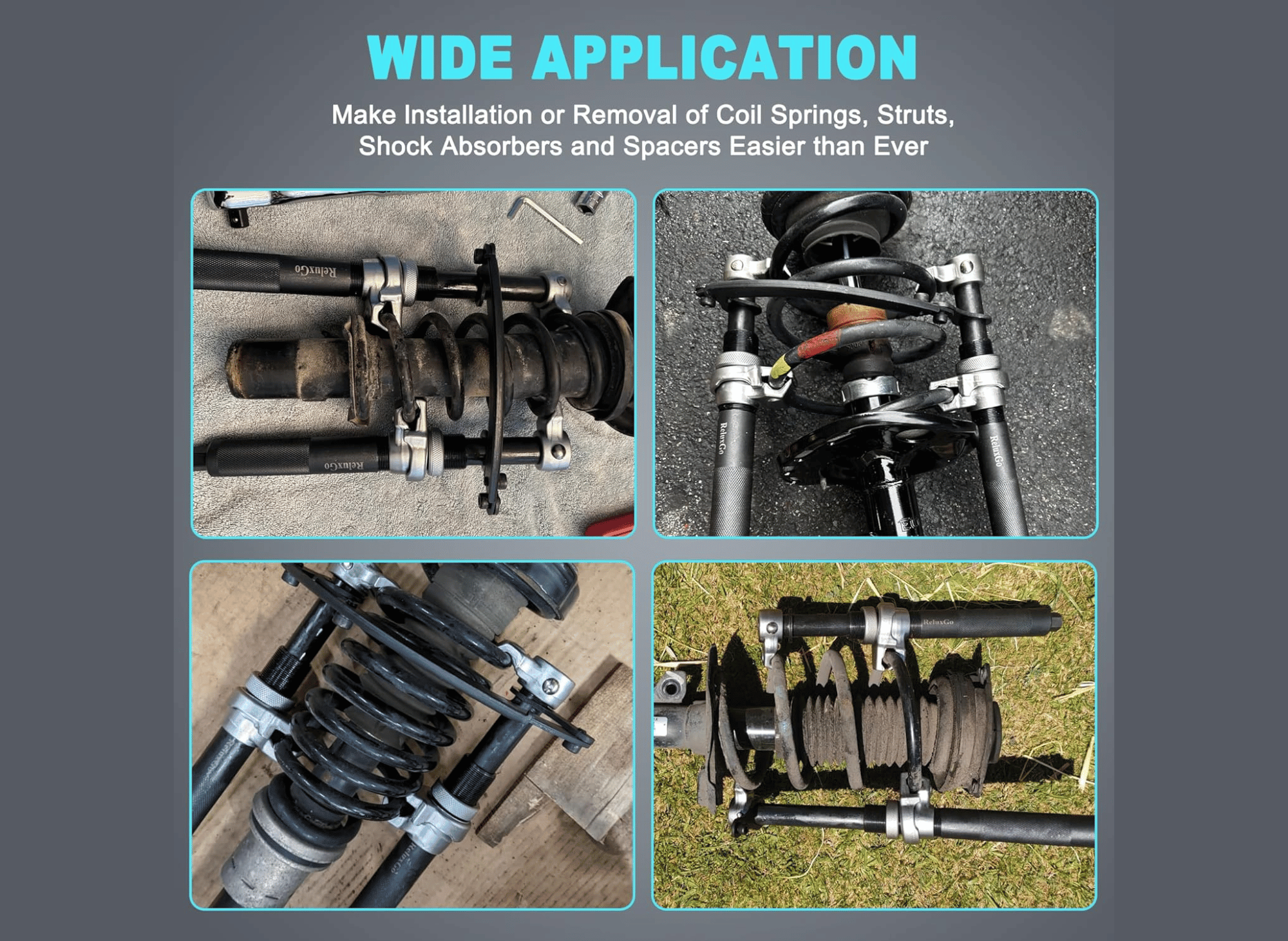 - Size and Type: Compressors come in different sizes. Check the tool’s specifications for the range of coil diameters and wire thicknesses it can handle. MacPherson strut compressors are common, but other types exist for different suspension designs. Make sure to verify if the compressor is compatible with both front springs and rear springs, as some tools are designed specifically for front suspension components.