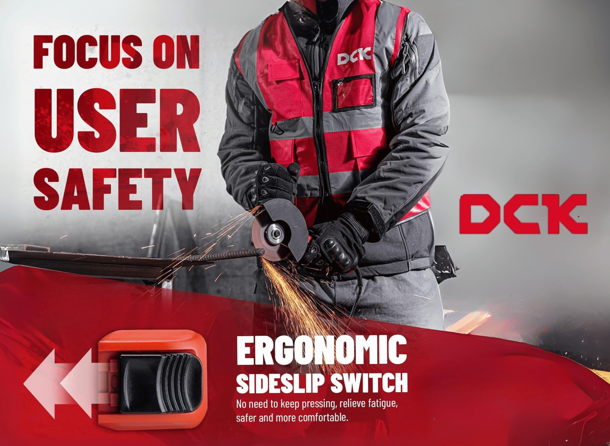 DCK has clearly prioritized user safety. The grinder comes with two distinct wheel guards: one for grinding and a more enclosed one for cutting. These guards are adjustable and effectively deflect sparks and debris away from the operator, making them suitable for various tasks.