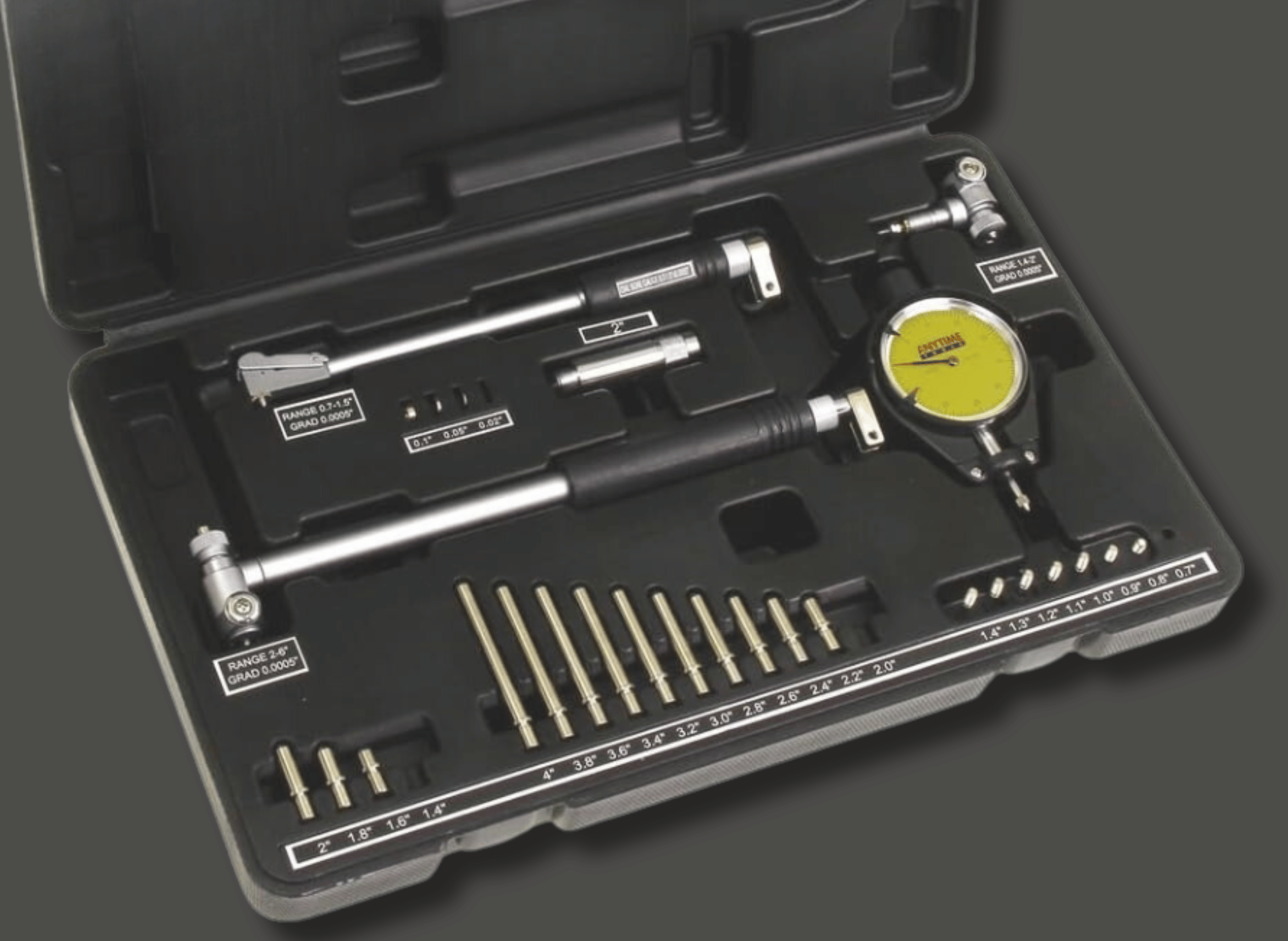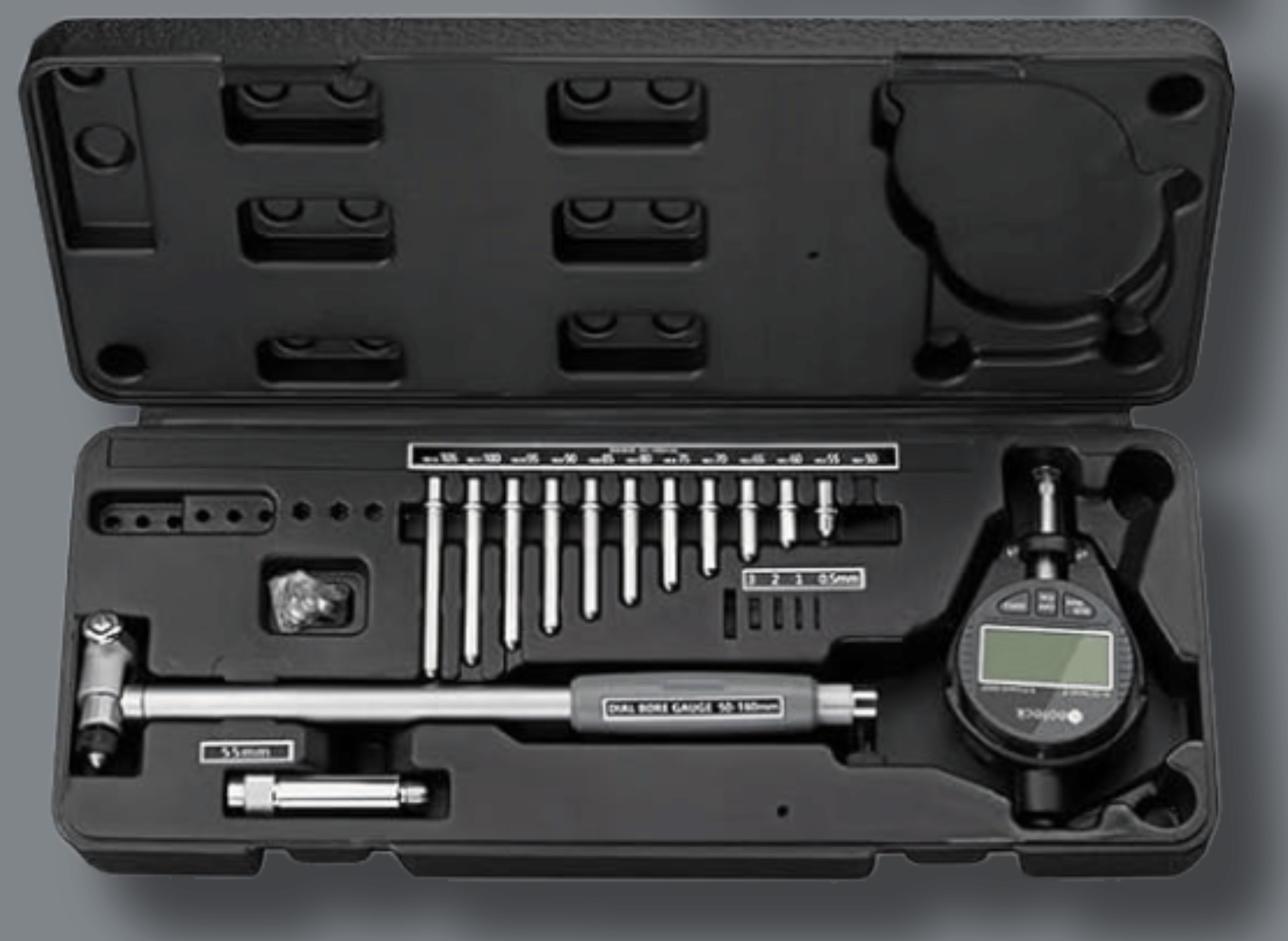 - Precision Measurement: This bore gage set is ideal for professional applications, as it is equipped with a digital indicator that allows for highly accurate measurements.