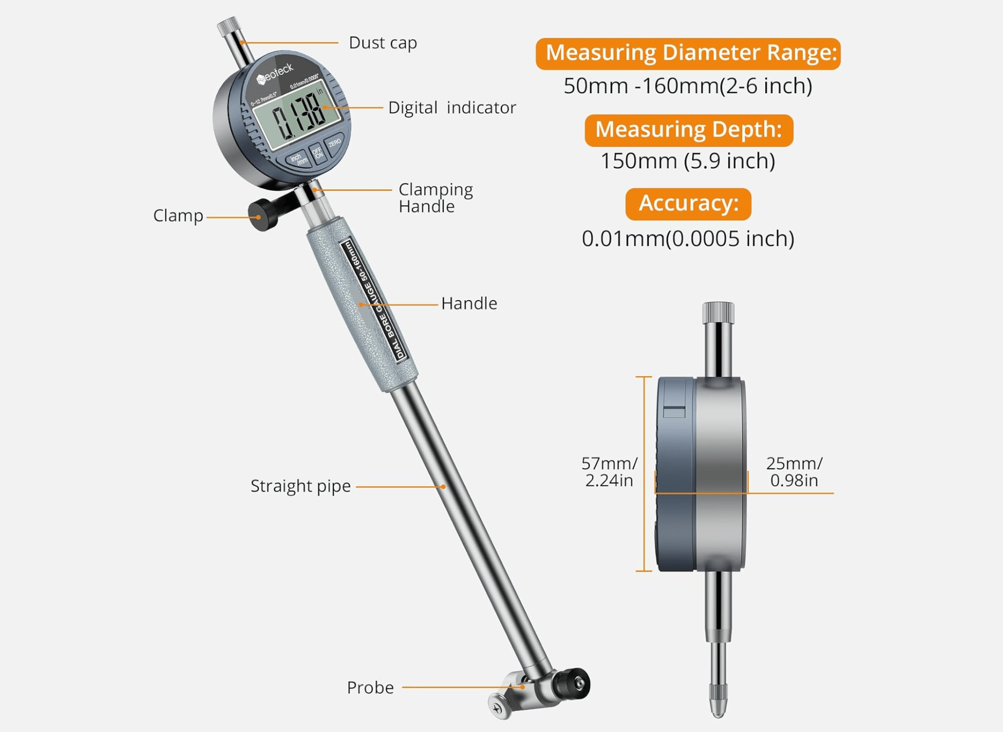 - Optimal for Deep Cylinders Measurement: With a depth capacity of 150mm (5.9 inches), this bore gauge set is perfect for accurately measuring deep engine cylinders.