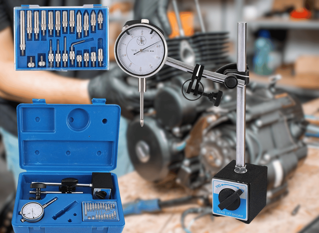The universal rotating shaft with fine-tuning knob lets you take more precise measurements, and the strong base holder keeps the indicator securely in place during use.