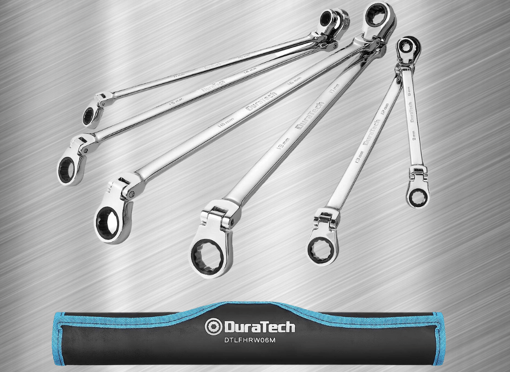 DURATECH Extra Long Flex-Head Double Box End Ratcheting Wrench Set