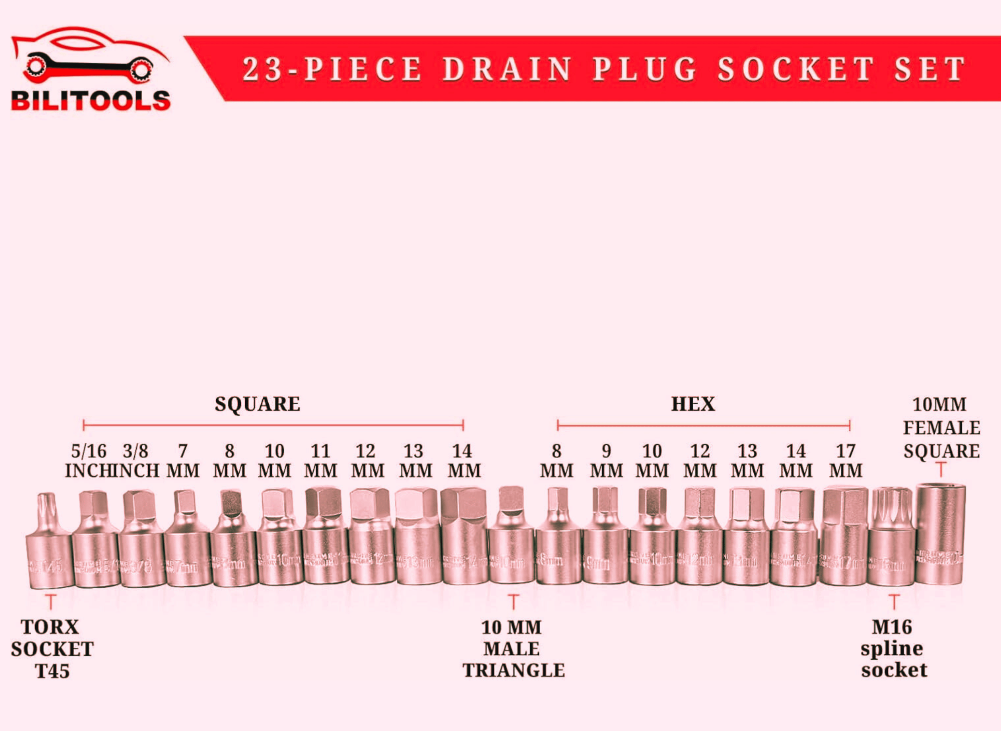 BILITOOLS 23-Piece Drain Plug Socket Set
