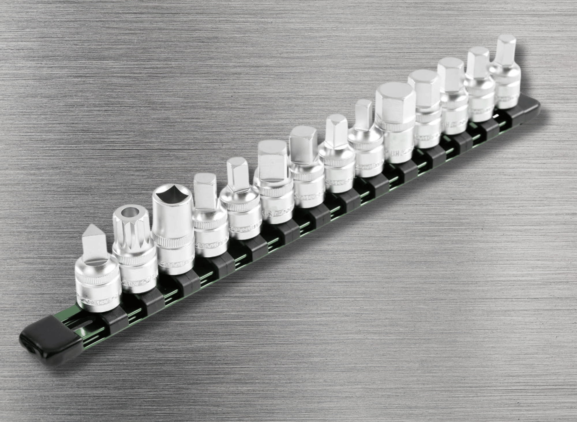 Metric hex sockets from 8mm to 17mm, covering most Asian and domestic vehicles