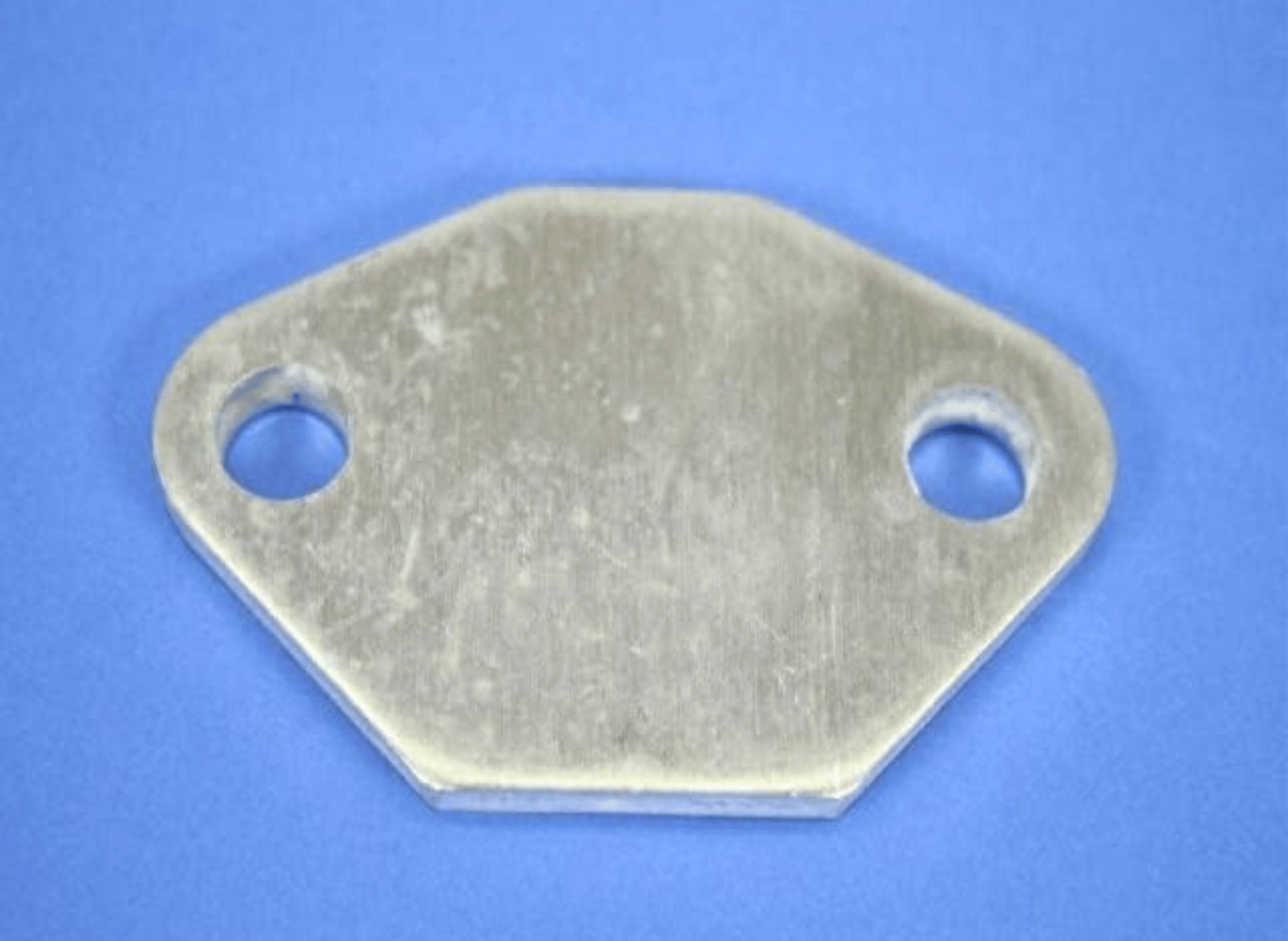 An EGR (Exhaust Gas Recirculation) block-off plate is a small, flat piece of metal that blocks the passage of exhaust gases in a vehicle's engine. It is commonly installed in a vehicle's intake manifold equipped with an EGR system, as it helps improve performance.