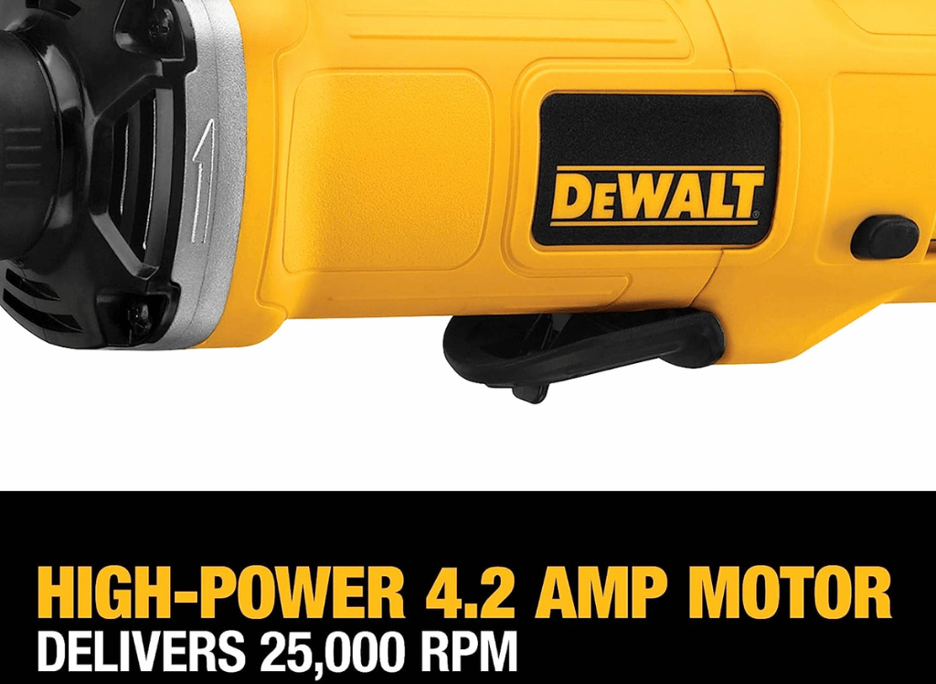 The DEWALT Die Grinder is a powerful tool designed for grinding applications. It has a 4.2 amp, 25,000 rpm motor provides high power and speed. This makes it the perfect tool for all 1-1/2-inch grinding tasks. Additionally, its AC/DC capacity allows it to be used with welding machines and generators, increasing its versatility.
