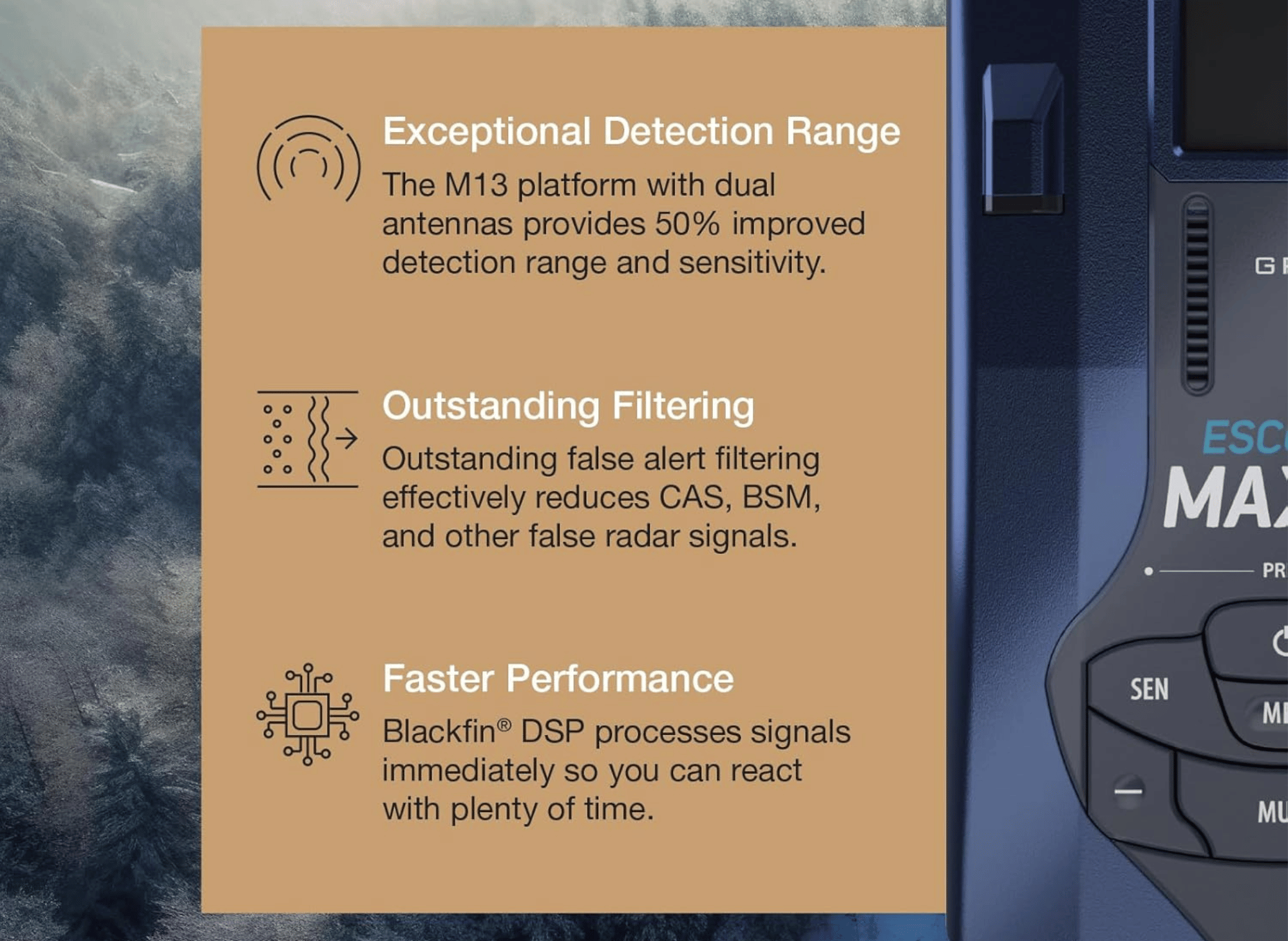 One of the most significant upgrades in the MAX 360 MKII is its detection range. Escort claims a 50% improvement compared to the original MAX 360. This boost is achieved through a revamped M13 platform and dual antennas, which work together to enhance sensitivity.