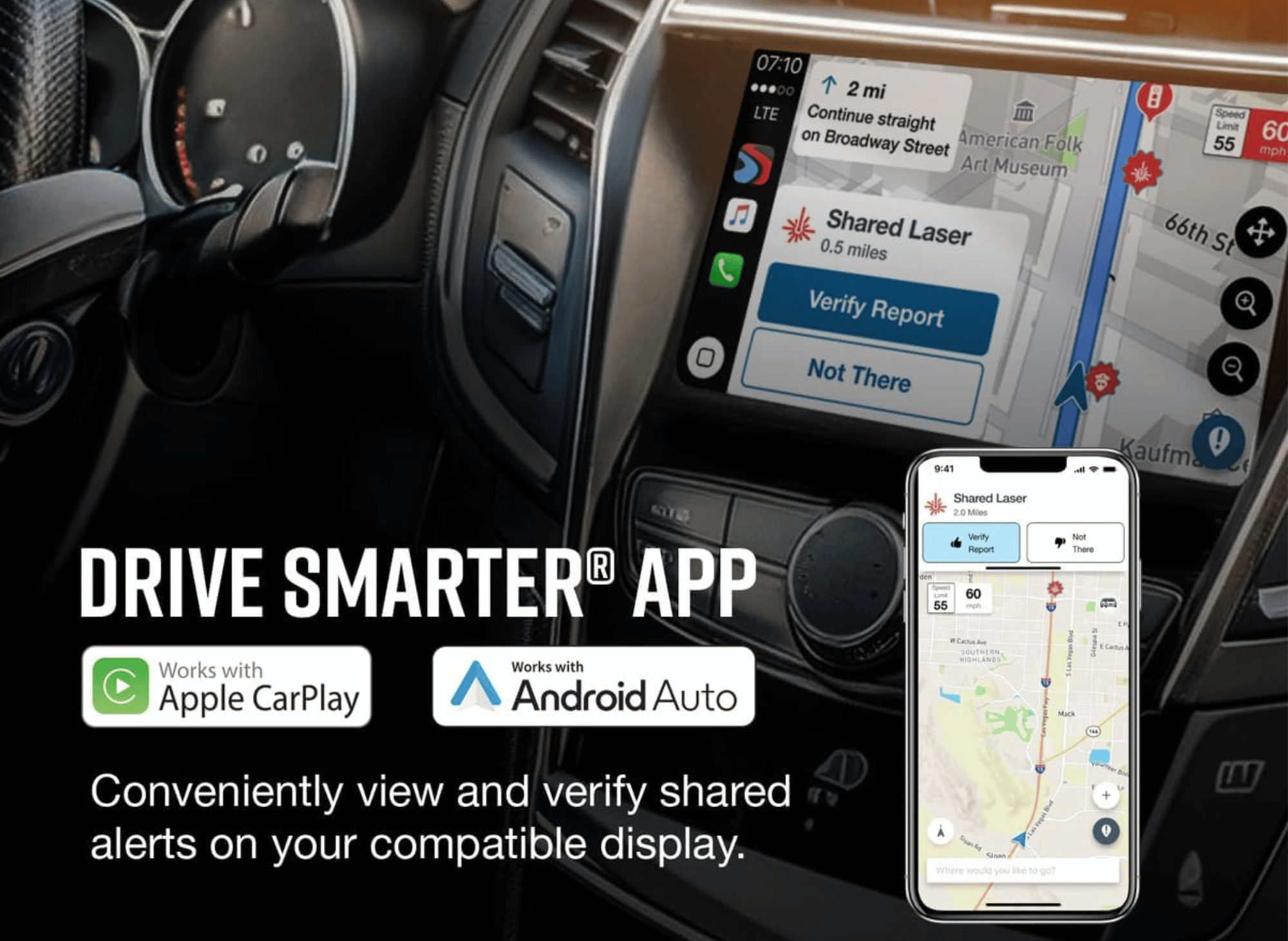 By connecting to the Drive Smarter app, the MAX 360 MKII taps into a vast network of drivers. This community-based platform allows users to share and receive real-time alerts for police activity, speed traps, speed camera locations, and road hazards reported by others. With Apple CarPlay and Android Auto compatibility, you can view these alerts directly on your vehicle’s infotainment display, integrating this crucial information seamlessly into your navigation, along with ads related to driving safety.