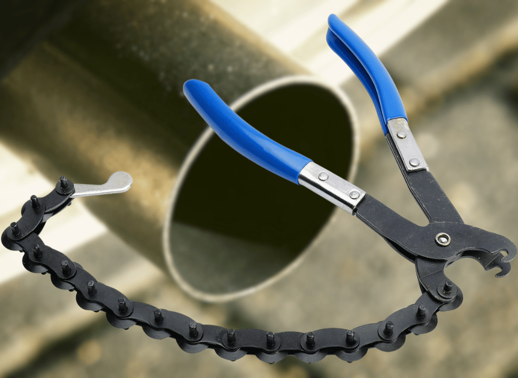 If you need to cut a pipe quickly and easily, the OEMTOOLS exhaust and tailpipe cutter is the perfect tool. Our pipe cutter tool can be used in four easy steps: wrap the chain around the pipe, hook the chain onto the plier jaw, close the plier jaw until the pipe cutter wheels are tight on the pipe, hand rotates the chain around the pipe until the pipe is cut.