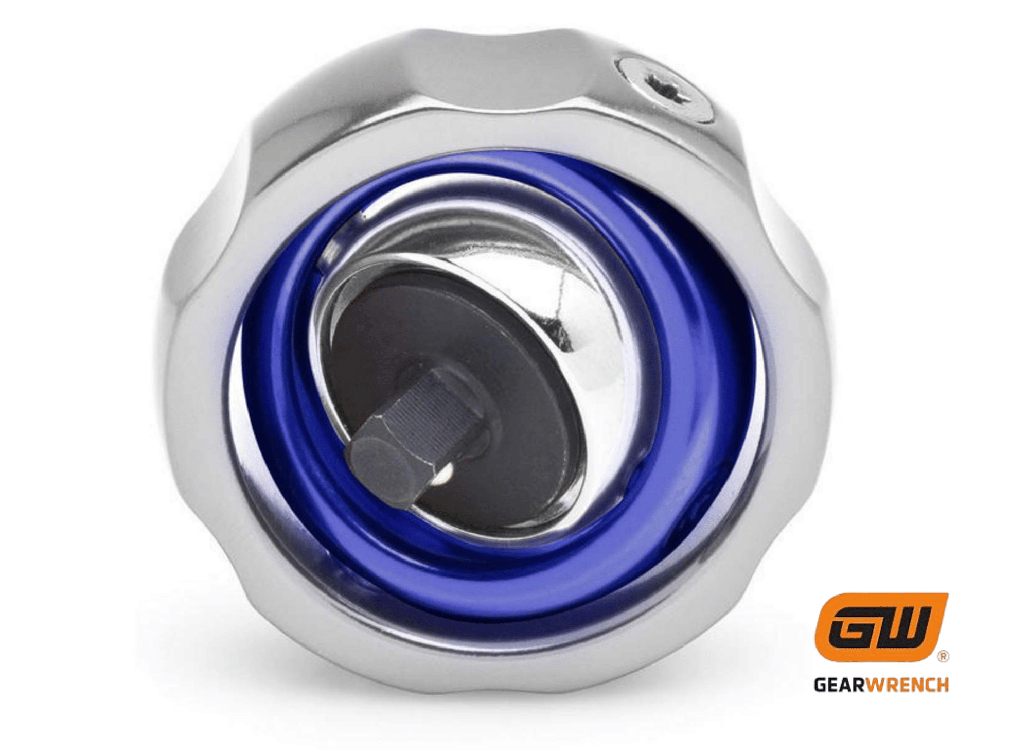 The "gimbal" design allows the ratcheting head to rotate on two separate axes. This means you can angle the outer ring, the part you grip, in almost any direction while the drive square remains stationary on the nut or bolt. You can tilt the handle up, down, or sideways to clear obstacles, giving you the ability to spin fasteners on and off in areas where a standard handle would be blocked by hoses, wires, or brackets.
