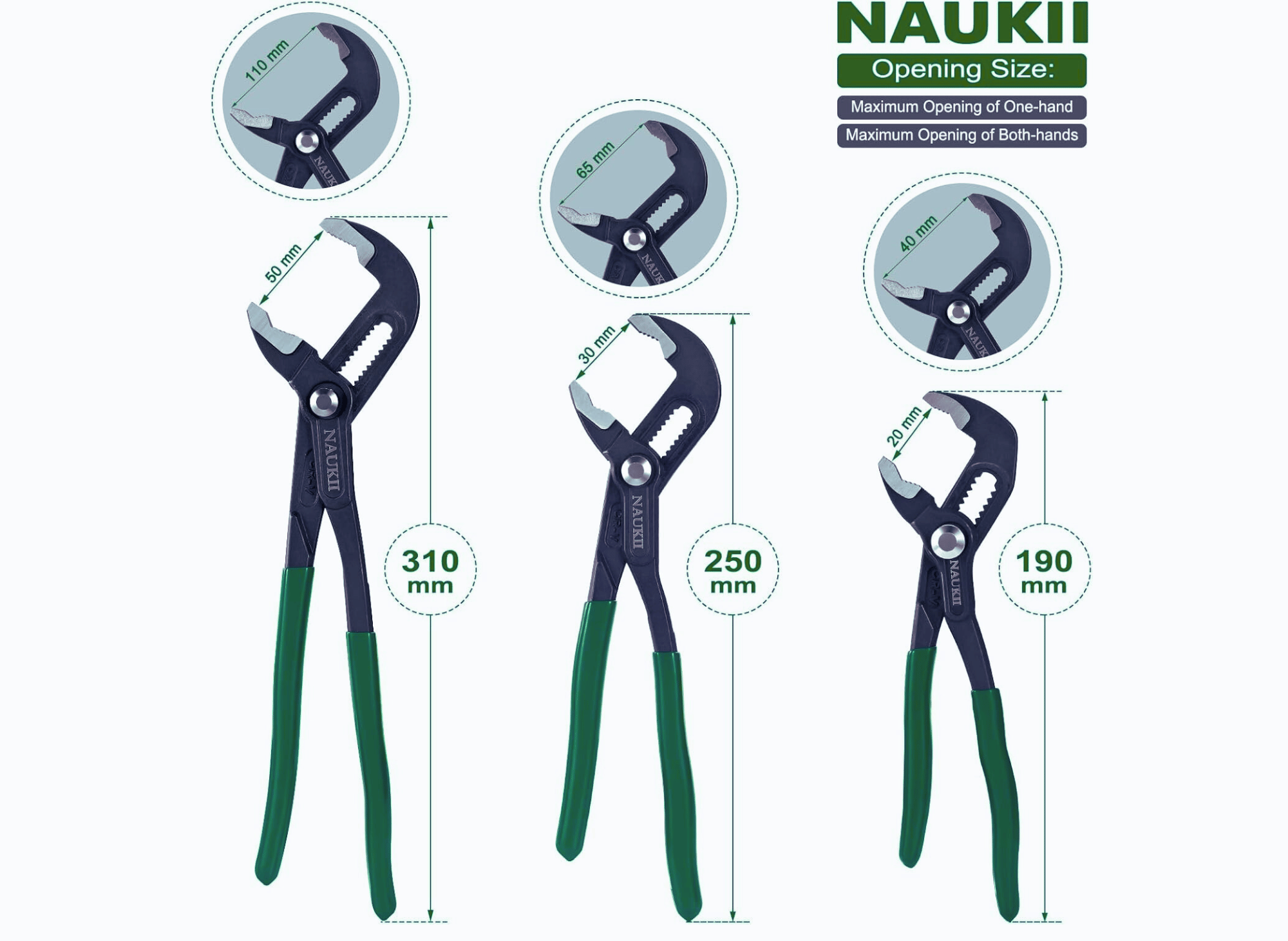 NAUKII focuses on ergonomic excellence and precision engineering in its groove joint pliers. The tongue-and-groove joint system provides reliable holding power across the adjustment range.