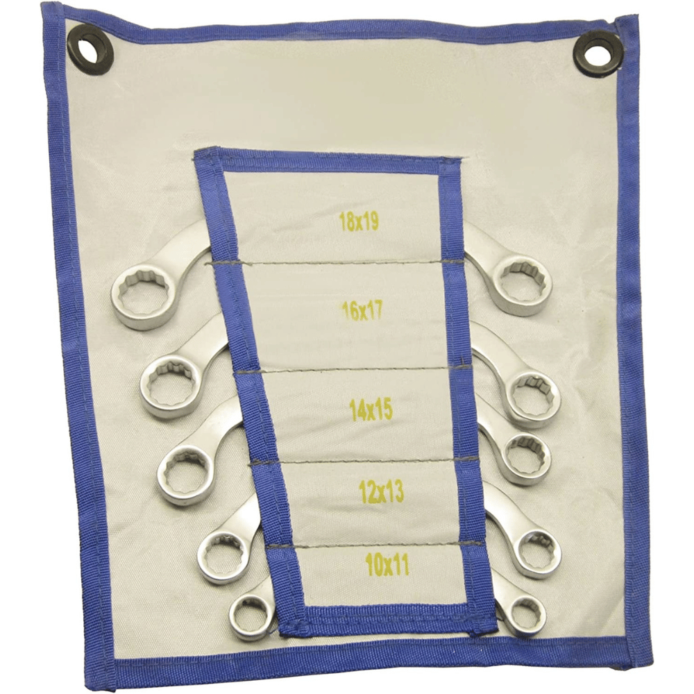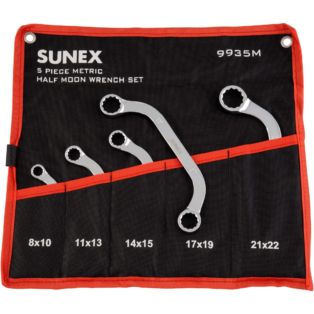 The Sunex 5-piece metric half-moon wrench set is an excellent addition to any toolbox. The wrenches are fully polished drop-forged alloy steel and include the most common sizes used for automotive repair. The canvas pouch included makes for convenient storage.