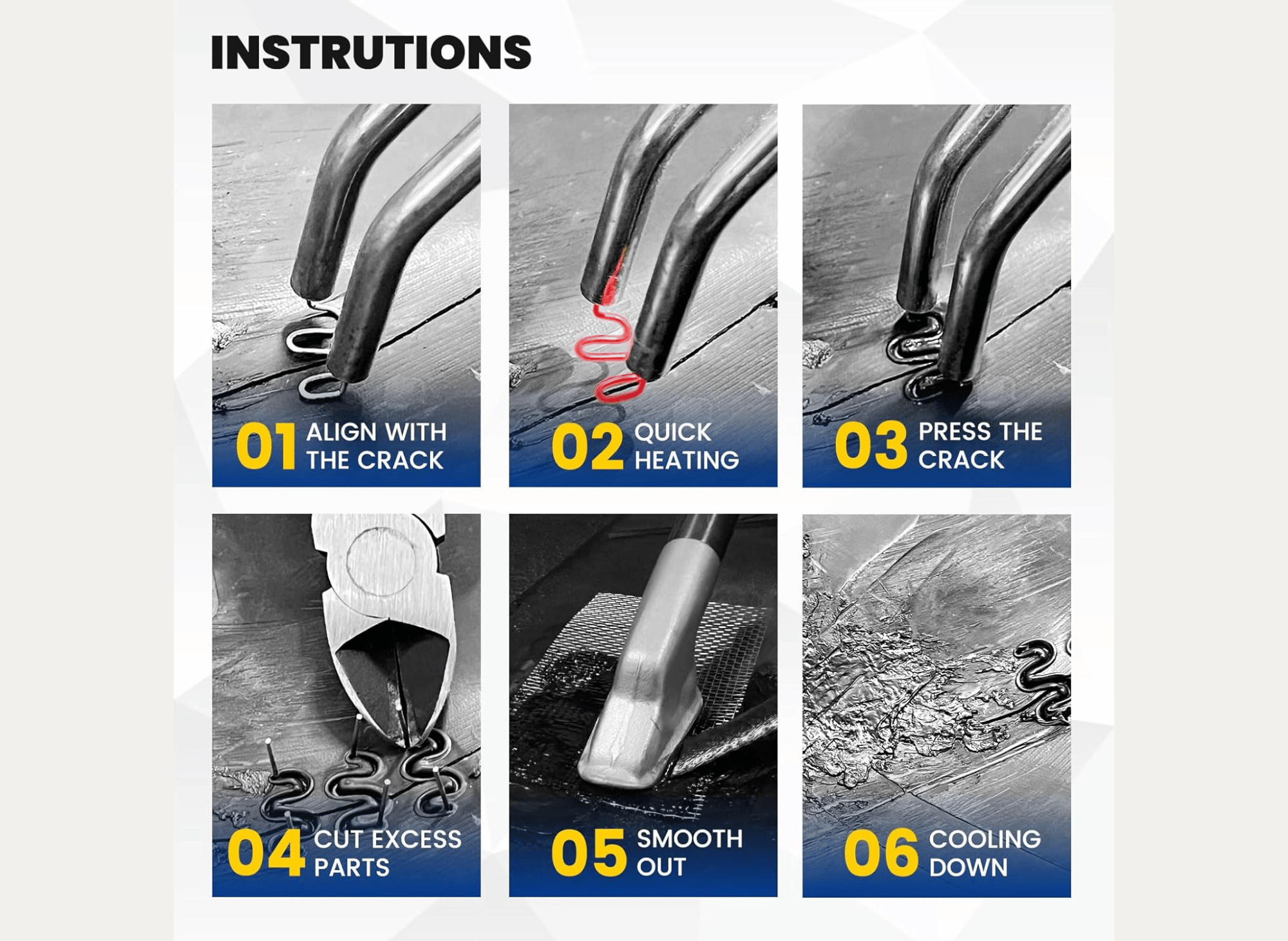 These tools work by heating a metal staple, which is then inserted into the damaged area of the plastic. The heat from the staple melts and fuses with the surrounding plastic, creating a solid bond that effectively fixes the damage and returns to its original strength.