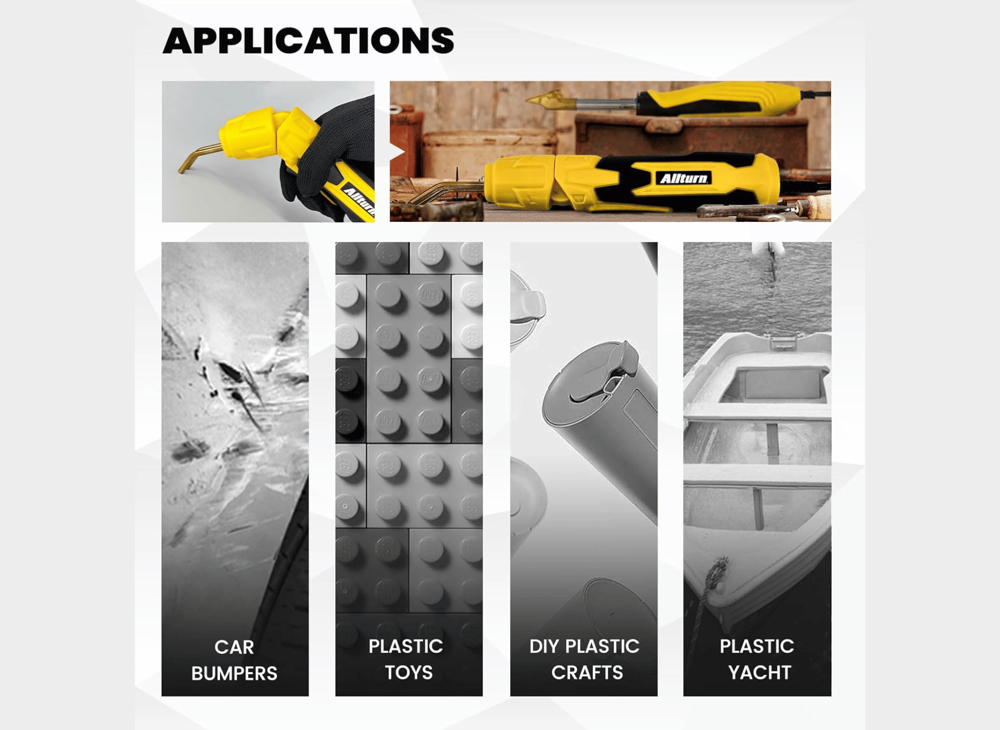 - Exceptional Versatility: The Allturn Plastic Welder is designed to accommodate a wide range of plastic repair needs, from automotive parts like bumpers and dashboards to household items and DIY projects. Its diverse applicability makes it an indispensable tool for various repair tasks. At an affordable price, it offers great value for money compared to the cost of replacement parts.