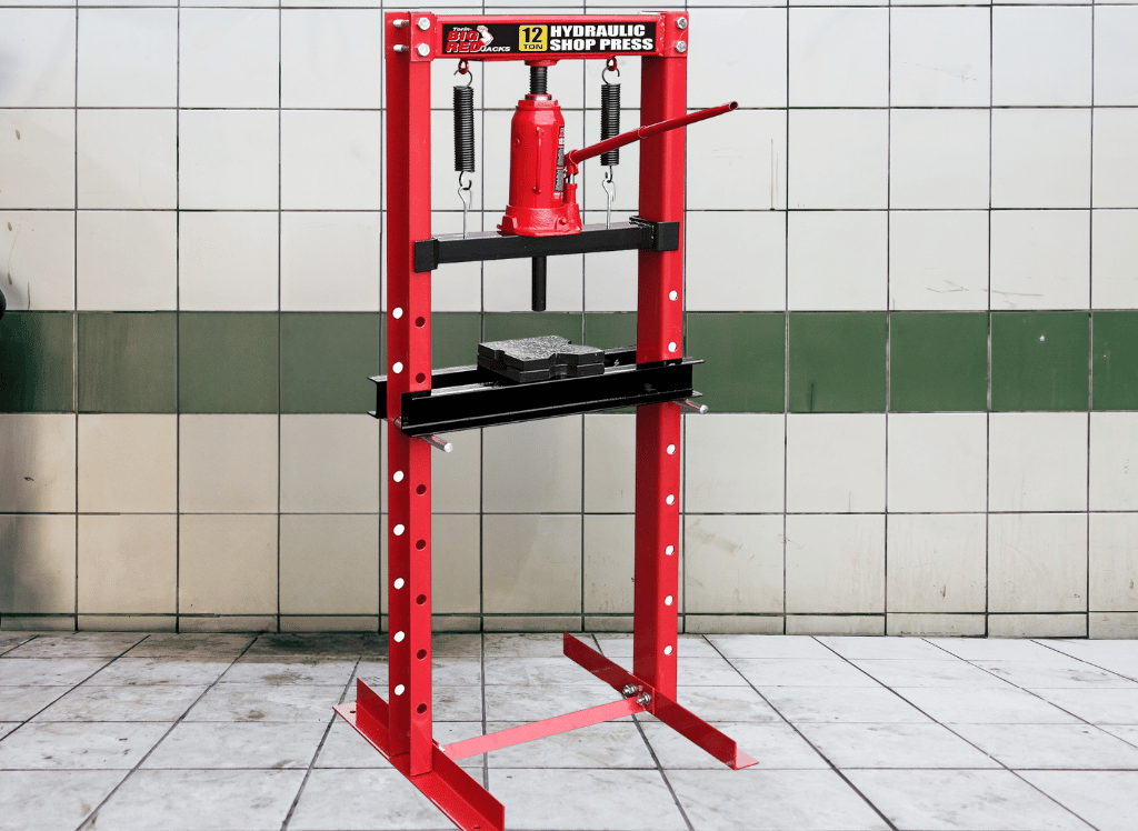 The Big Red, T51201 Torin Steel H-Frame Hydraulic Garage/Shop Floor Press is your answer for heavy-duty metal forming operations. This hydraulic press is an essential tool for any automotive or manufacturing services and is designed for straightening, bending, pressing, and stamping.