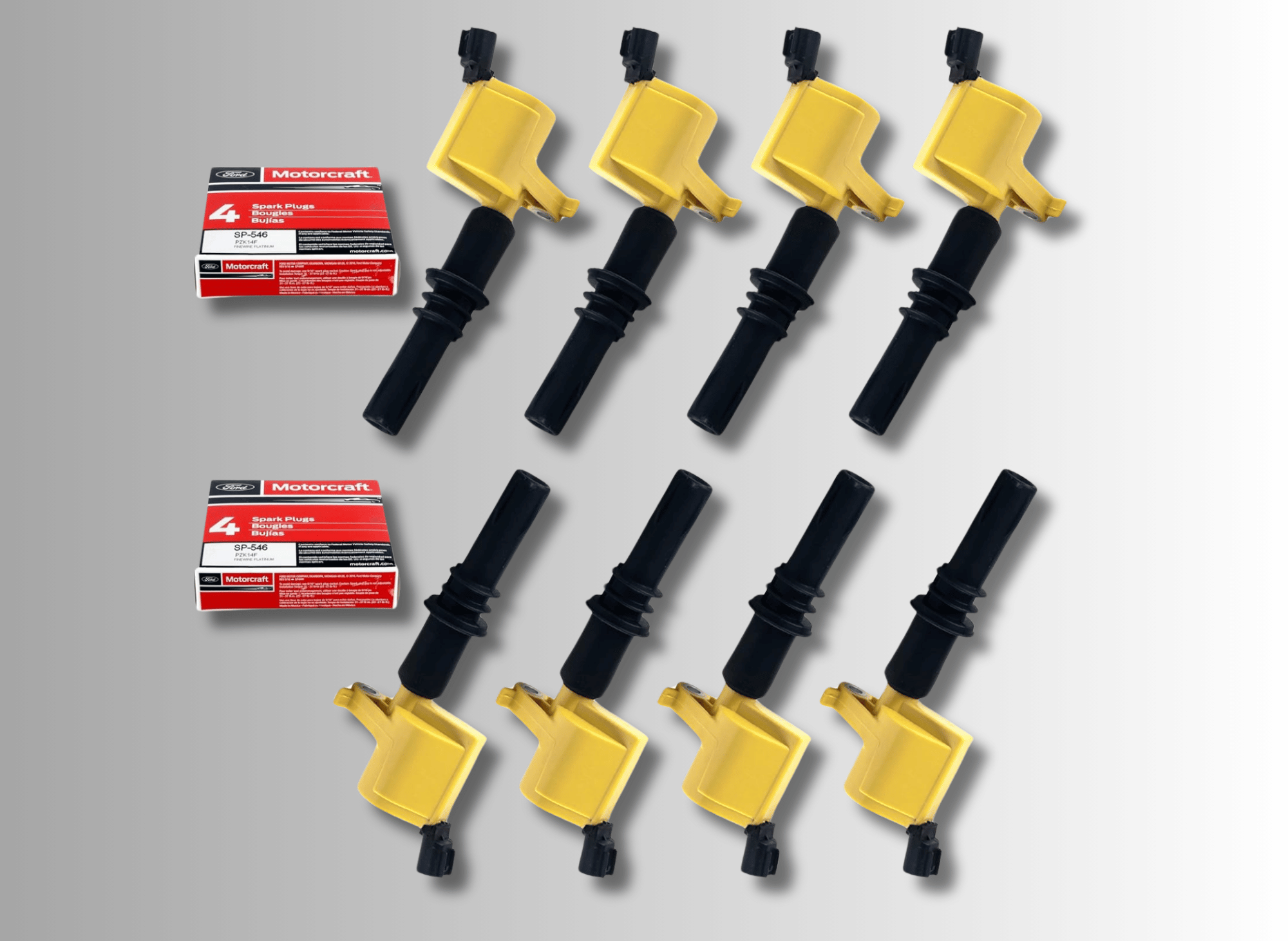 MAS Set of 8 Yellow Straight Boot Ignition Coils Pack DG511 & Motorcraft Platinum Spark Plugs SP515 SP546 Compatible with Ford F150 F250 Lincoln Navigator