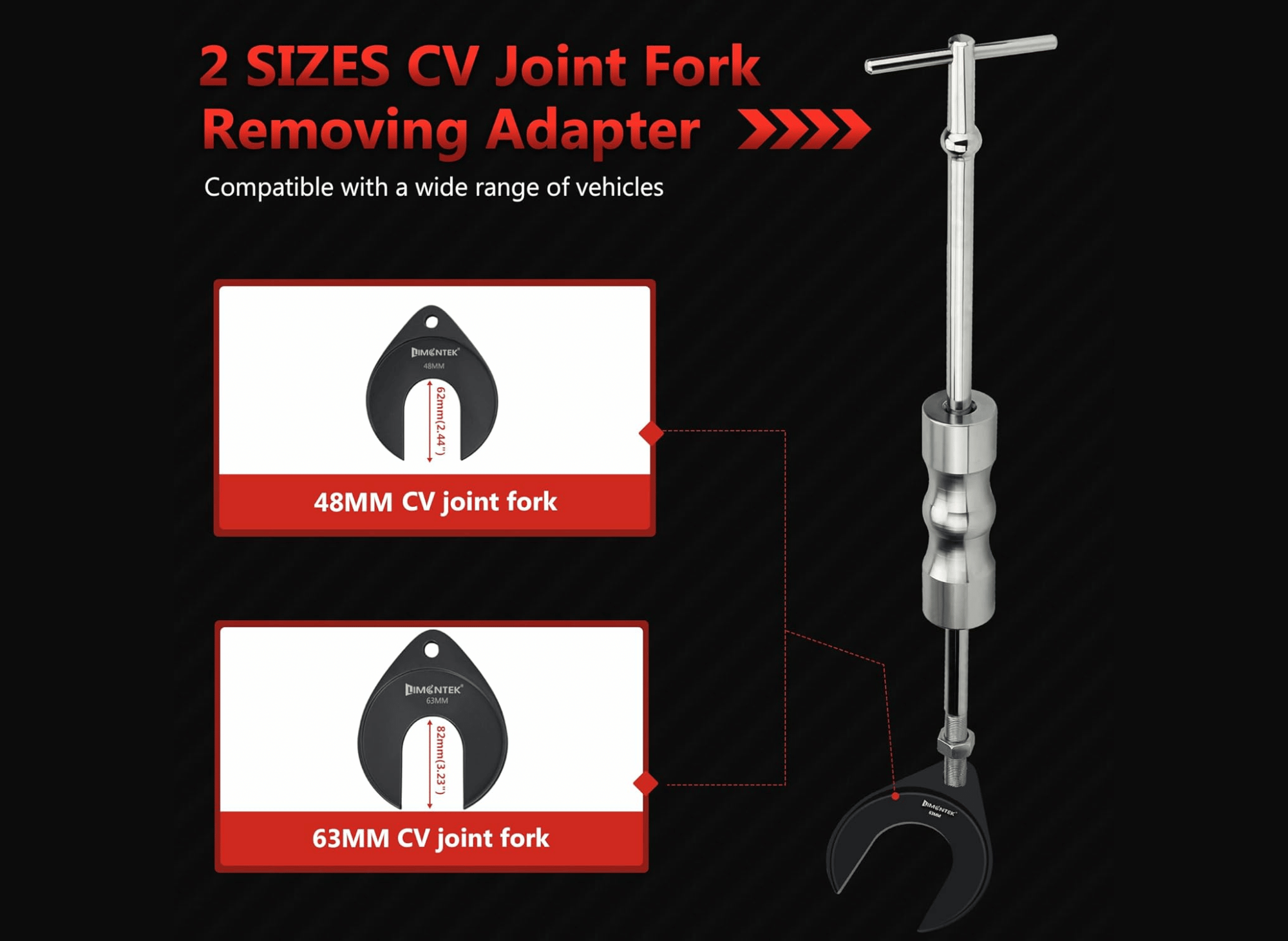 limontek Inner CV Axle Puller Removal Tool with Slide Hammer & 48mm 63mm CV Joint Fork Adapter