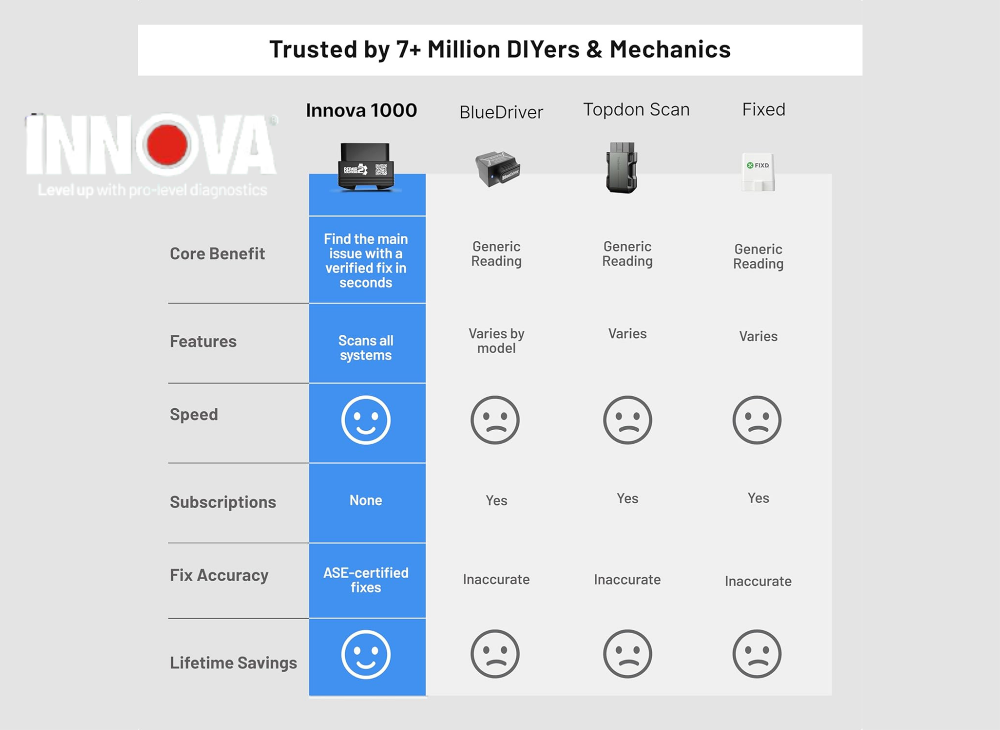 The market is flooded with OBD II scanners, but the Innova 1000 distinguishes itself through a blend of strong hardware and exceptional software.