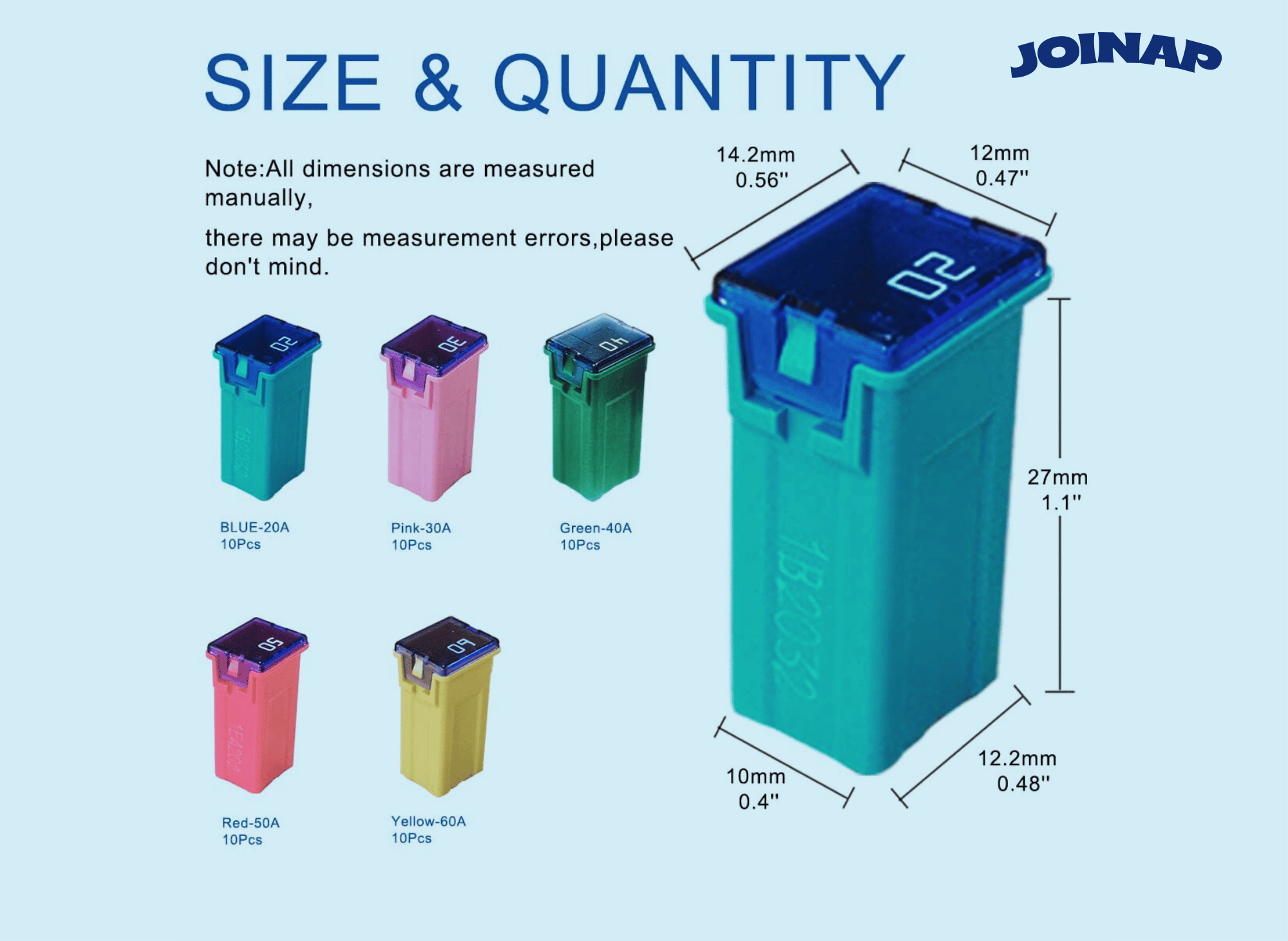 ,Automotive Tall/Standard and Low Profile Jcase Box Shaped Automotive Fuses for Trucks, Cars and SUVs (20A, 30A, 40A, 50A, 60A, 80A)