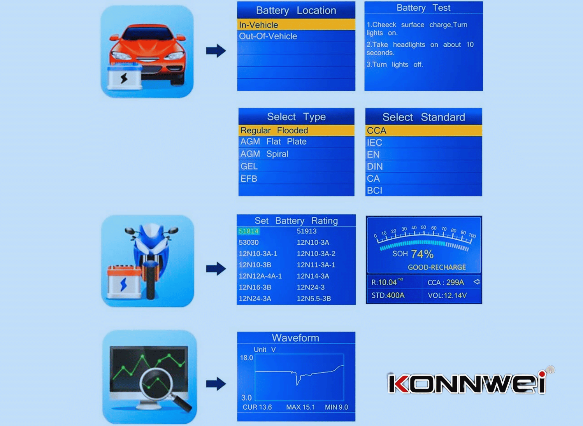 If these steps don’t solve the problem, contact KONNWEI’s customer support for further assistance. By following these troubleshooting tips, you can quickly get your car battery tester back in action and continue getting accurate results.