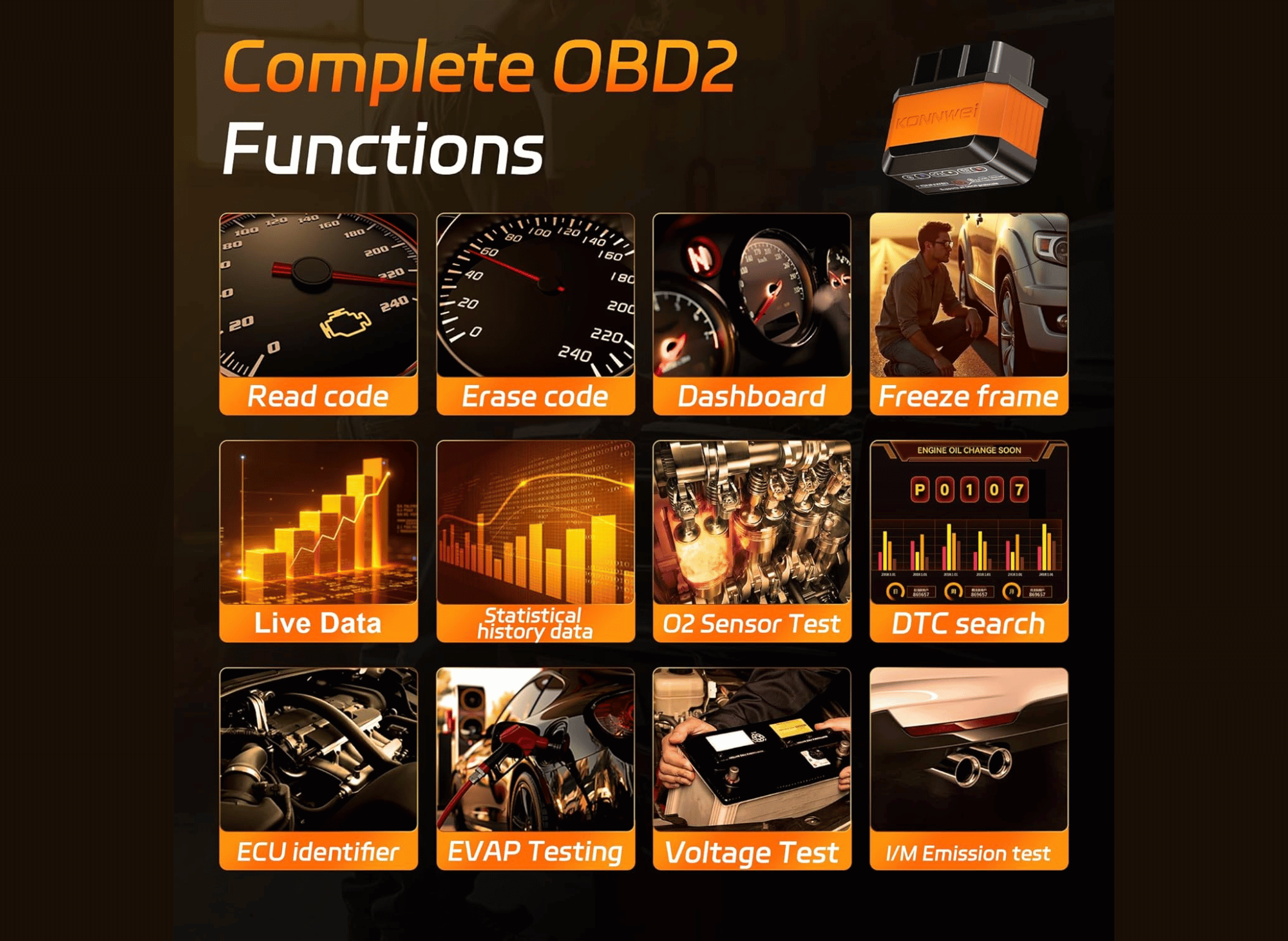 The KONNWEI KW905 packs a lot of functionality into its small frame. Its effectiveness in improving vehicle troubleshooting and maintenance accuracy makes it a valuable tool for DIYers and professionals. Here’s a breakdown of its most notable features and the benefits they offer: