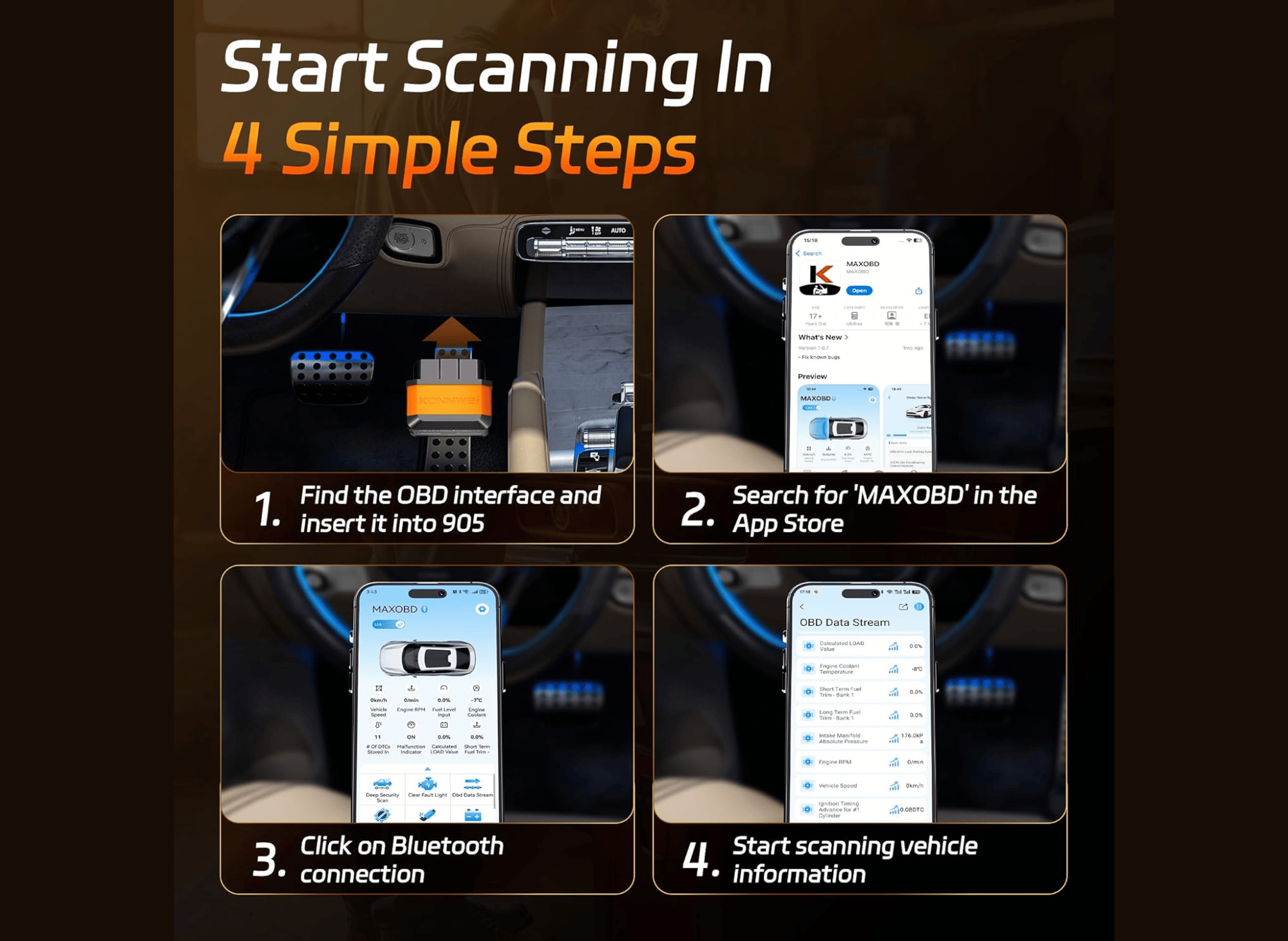 Equipped with Bluetooth 5.2 technology, the KW905 ensures a stable, fast, and reliable connection to your smartphone or tablet. It supports both iOS and Android devices, and the connection stability allows you to run diagnostics seamlessly without interruptions and adjust your settings as needed.