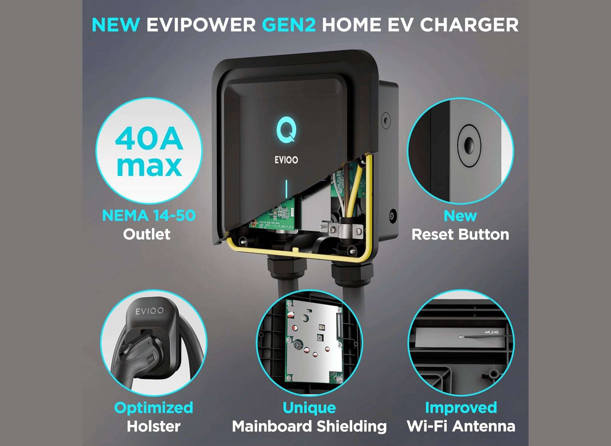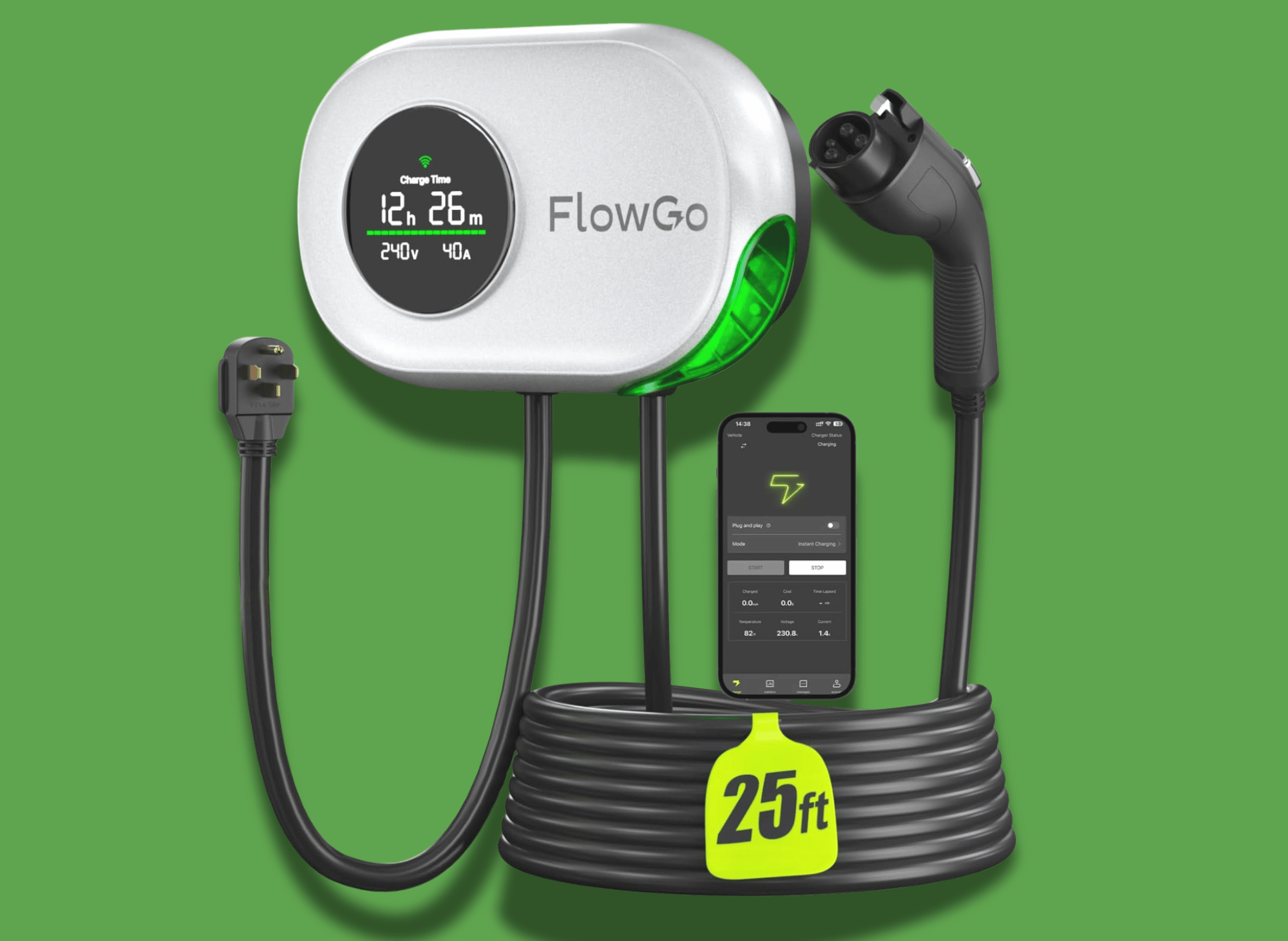 40 Amp - 9.6 kW 240V Wall Home EV Charger Level 2, NEMA 14-50 Plug, J1772 25' Cable - Enhanced Wi-Fi – UL, ETL Certified EVSE, Smart Electric Vehicle Charging Stations – GEN 2