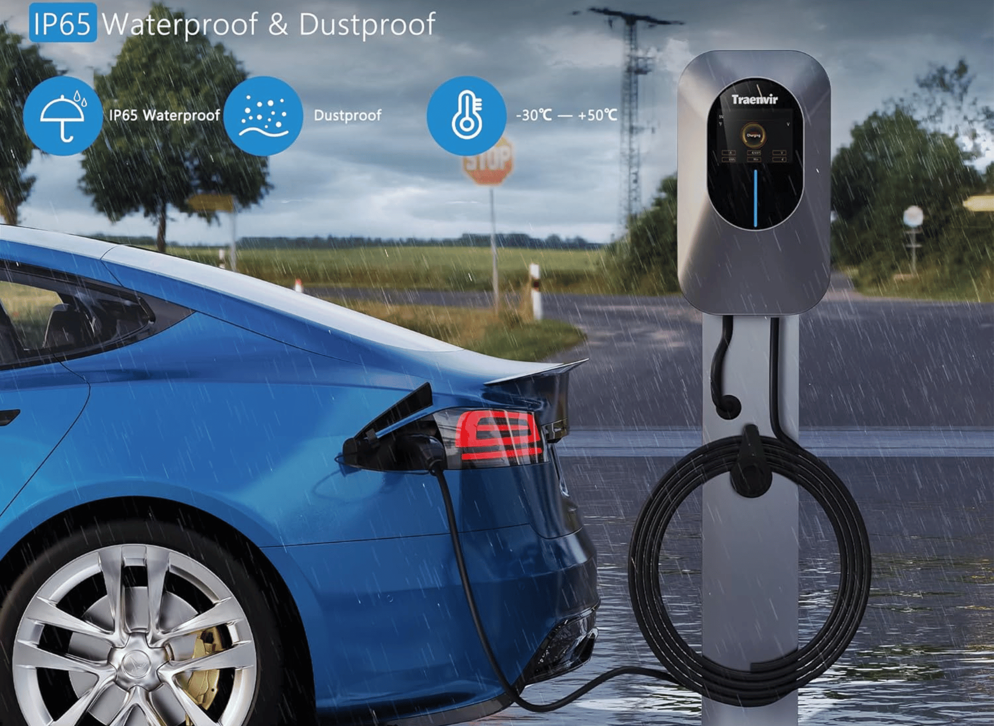 Its 25-foot charging cable offers flexibility, making it suitable for various scenarios, such as garages or outdoor spaces. With an IP65 protection rating, it is resistant to rain, water splashes, and dust, ensuring reliable outdoor use.