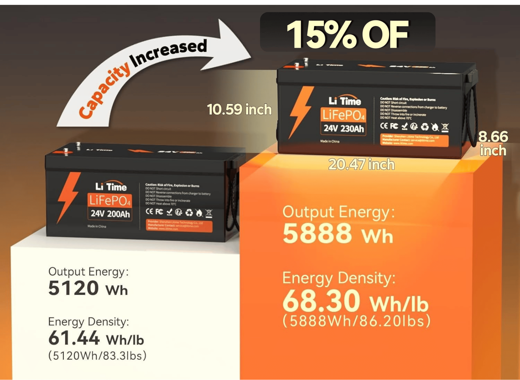 Compared to traditional bulky batteries, the LiTime 24V 230Ah offers a sleeker, more compact design while weighing considerably less. This allows for easier installation and more flexibility in storage, especially in compact spaces like RV compartments and off-grid setups.