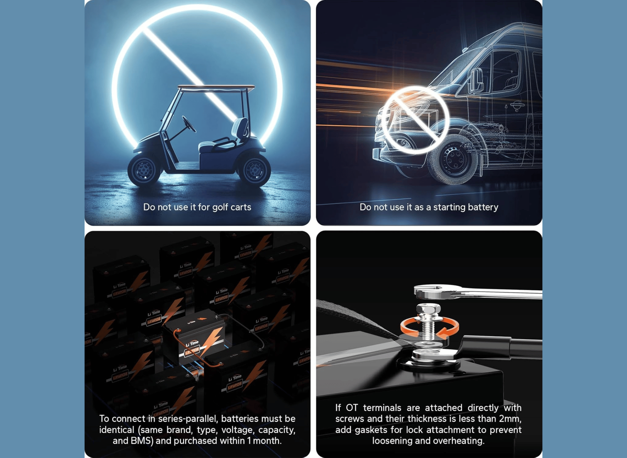 If your energy requirements grow over time, you're covered. The LiTime battery supports up to 4 parallel and 2 series connections, enabling greater versatility and reliability in storage setups. Customize your energy storage infrastructure to your specific needs without starting from scratch.
