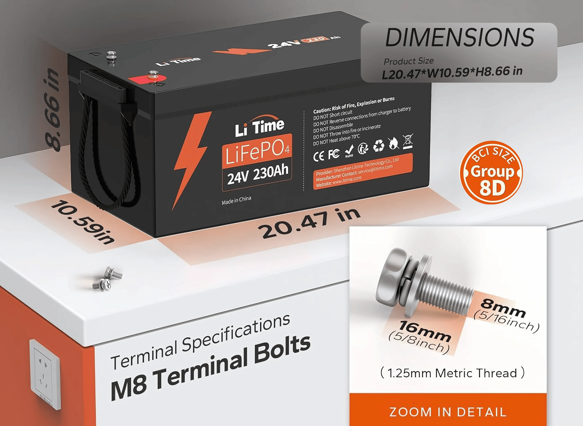 The LiTime 24V 230Ah Max LiFePO4 Battery takes these advantages to the next level with its cutting-edge engineering and user-focused design.